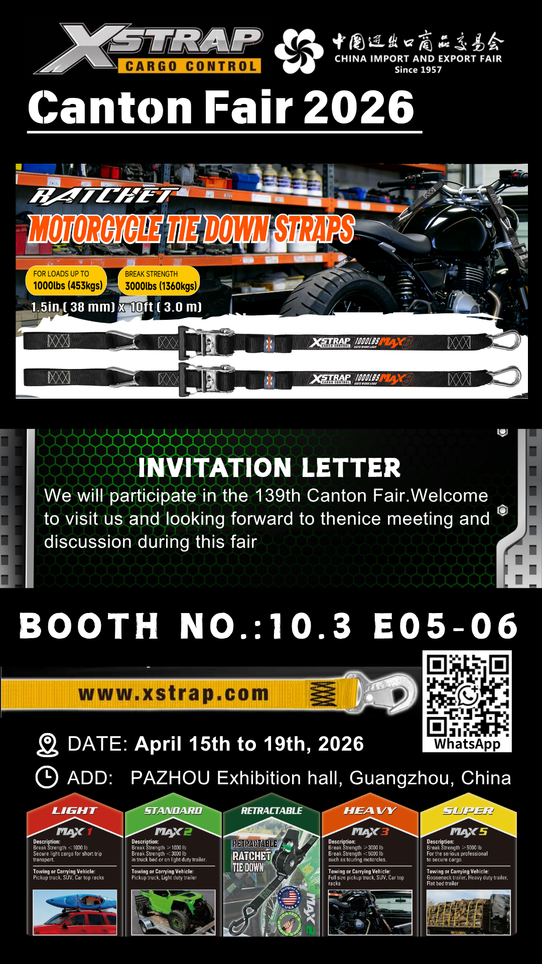 Founded in 2002, Xstrap is a professional manufacturer and supplier specializing in ratchet straps, bungee cords, tow straps and lifting slings. With 24 years of profound production experience in the industry, we adhere to the spirit of innovation and consistently launch new upgraded products on a regular basis.
