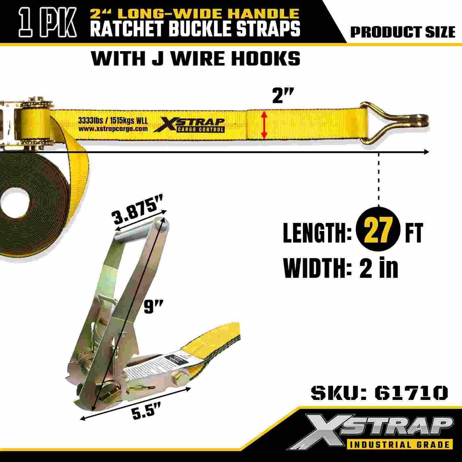 Xstrap 61710 Premium Ratchet Tie Down 2" x 27ft (1-Pack) 10000 LBS Break Strength Double J Hook Cargo Straps Perfect for Moving Appliances, Lawn Equipment and Motorcycles