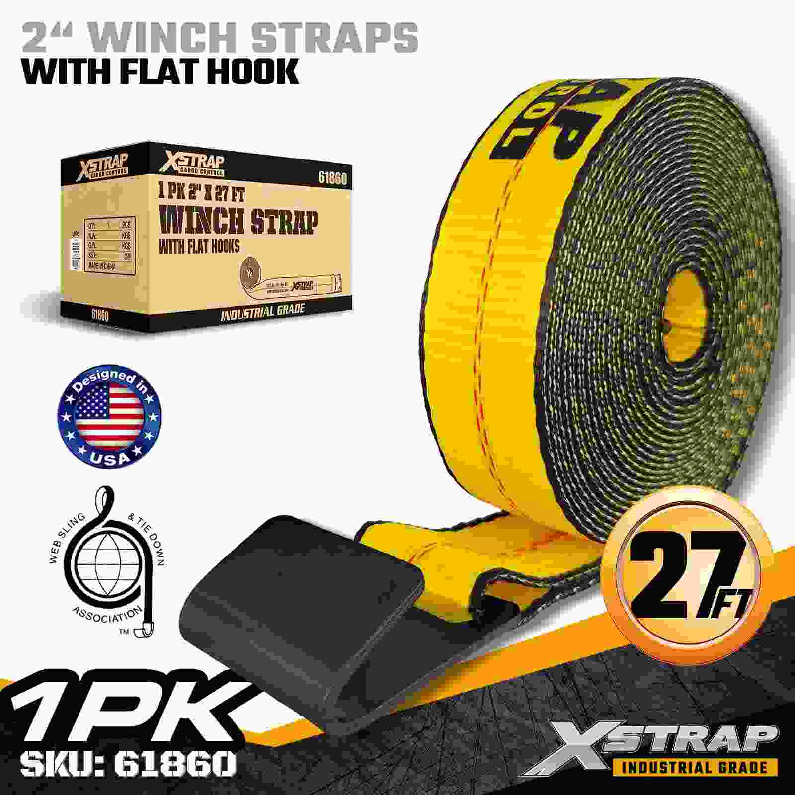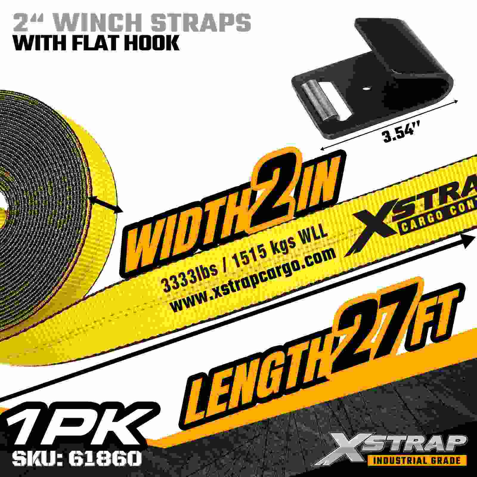 The Xstrap 61860 2" × 27ft Standard Winch Strap is built for reliable flatbed cargo securement, featuring a reinforced Flat Hook and high-strength polyester webbing. With a 3,333 lbs Working Load Limit and 10,000 lbs Break Strength, it delivers dependable performance for daily freight hauling, pallet loads, lumber, and general logistics applications