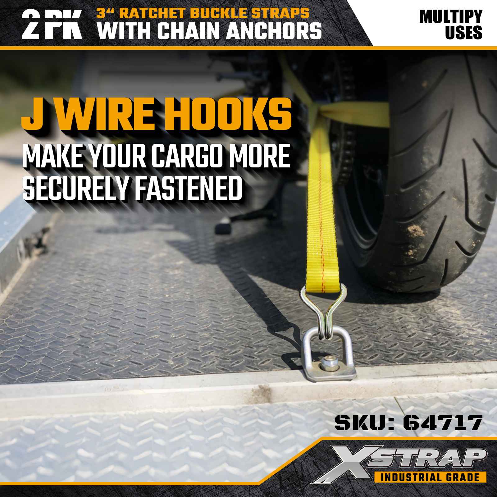 - Dual-Pack Convenience for Multi-Point Securement: Includes two heavy-duty straps, allowing operators to secure wider loads, create crosstie configurations, or keep a backup strap ready for long-distance hauling.