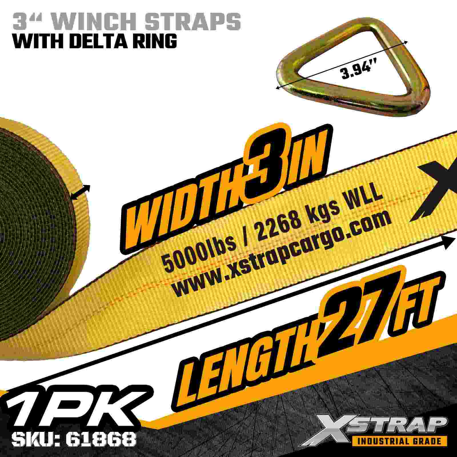 3" × 27ft Standard Winch Strap with Delta Ring