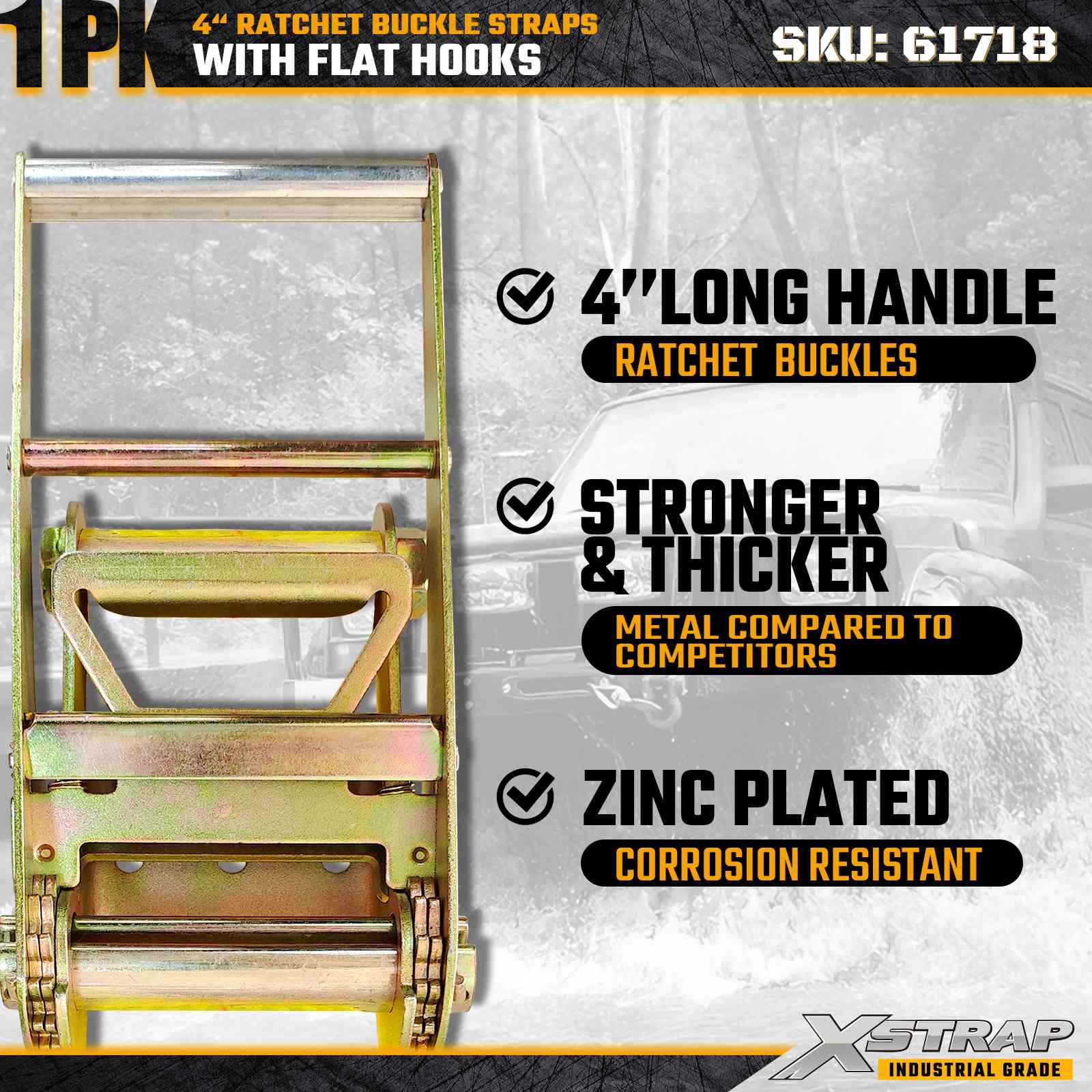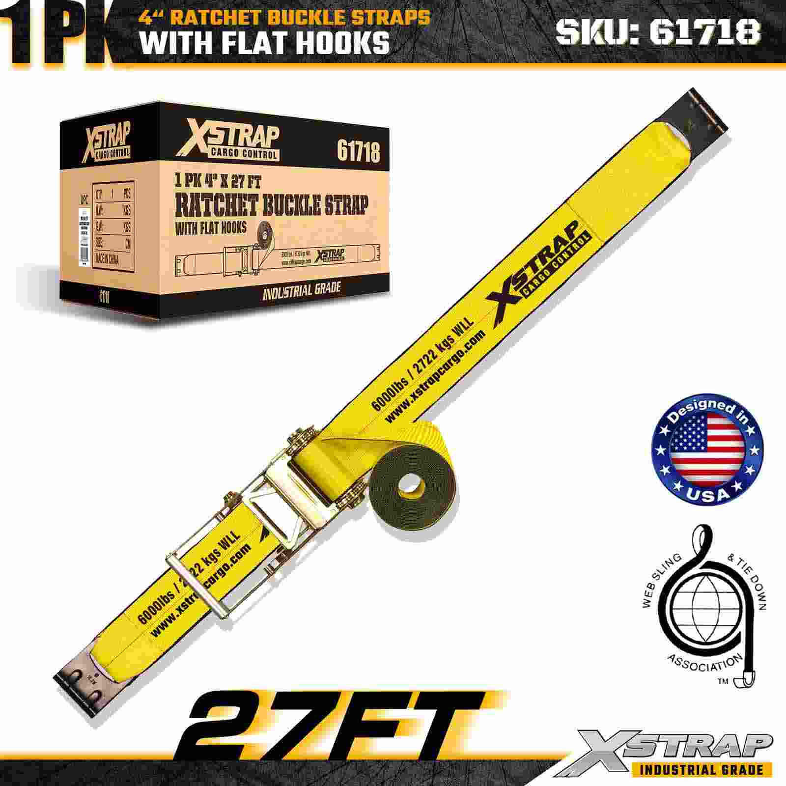 - 27ft Webbing for Versatile Cargo Applications: The 27ft strap length provides ample reach for securing large, wide, or bundled freight such as lumber, steel pipes, machinery, and palletized goods.