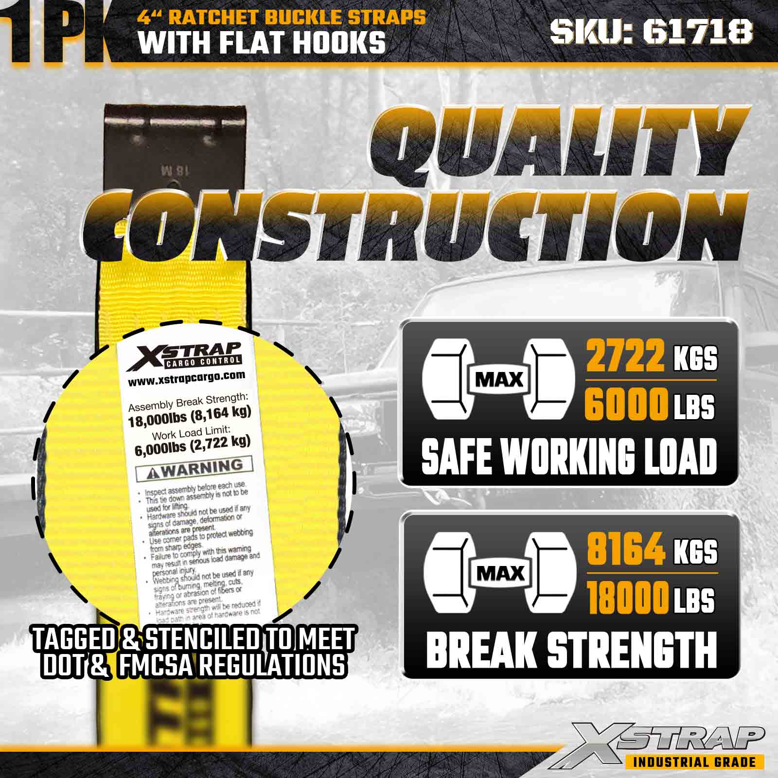 - Engineered for Professional Transport Standards: Rated at 18,000 lbs break strength and 6,000 lbs WLL, this strap meets the demands of trucking fleets, contractors, and industrial logistics requiring maximum durability and performance.