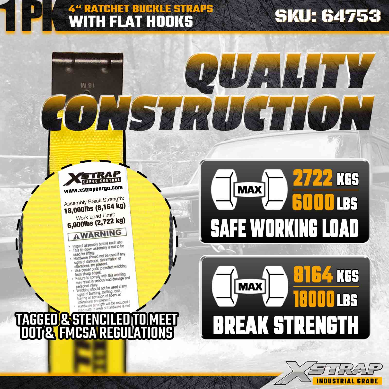- Engineered for Professional Transport Standards: Rated at 18,000 lbs break strength and 6,000 lbs WLL, this strap meets the requirements of trucking fleets, contractors, and industrial logistics needing maximum durability and performance.