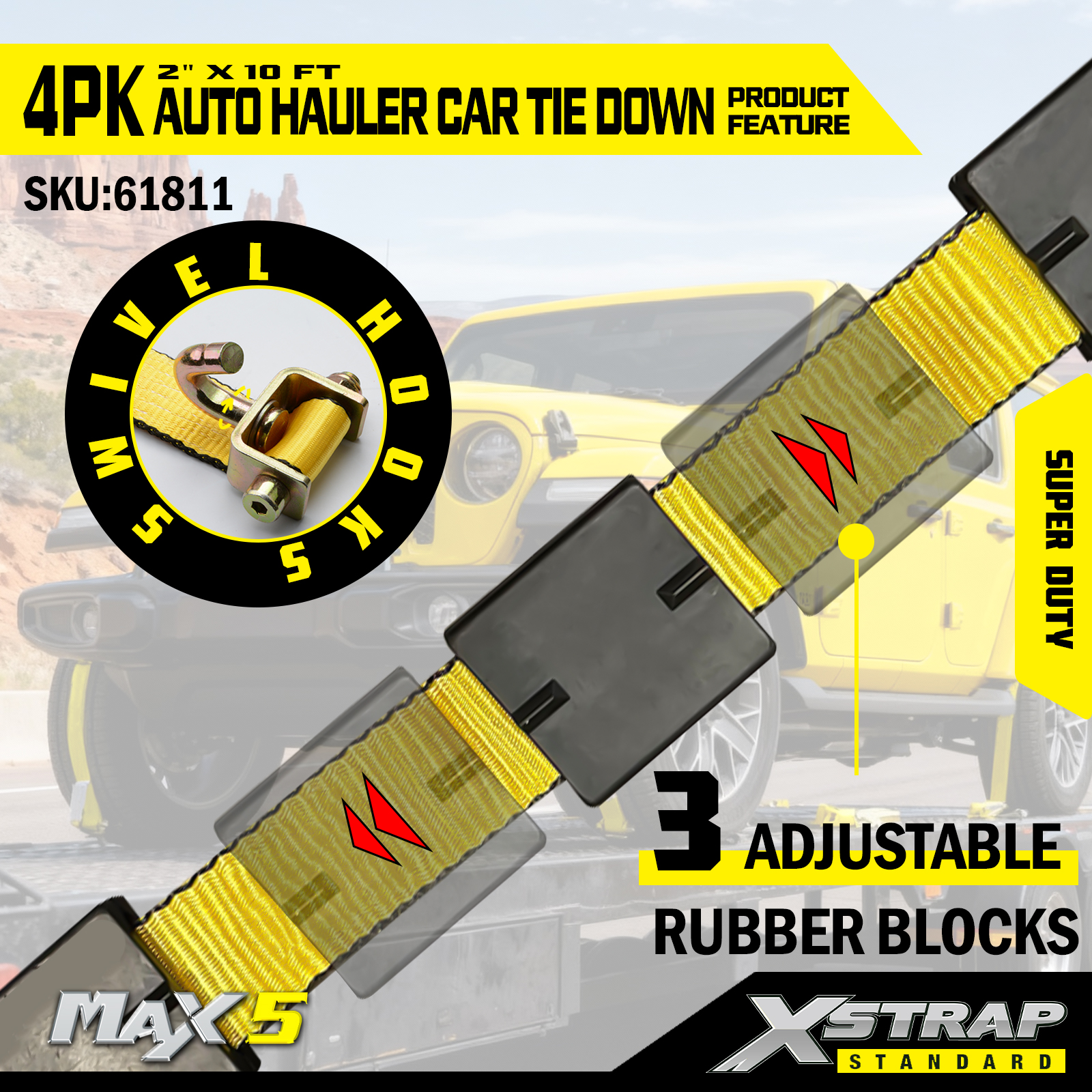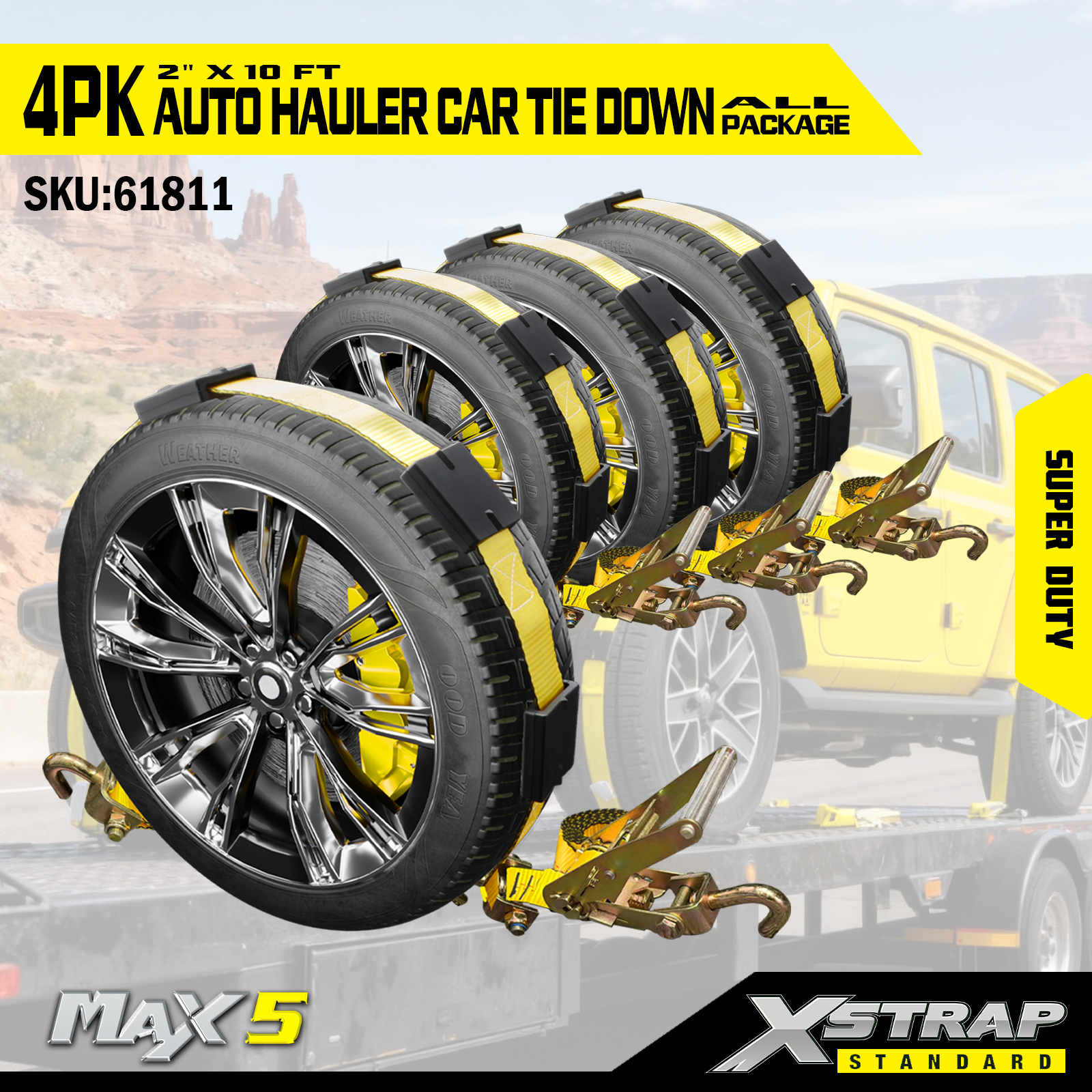 - 4-Pack Value: The 4-piece set provides full coverage for securing a single vehicle (e.g., one tie down per tire), with organized packaging for easy storage when not in use.
