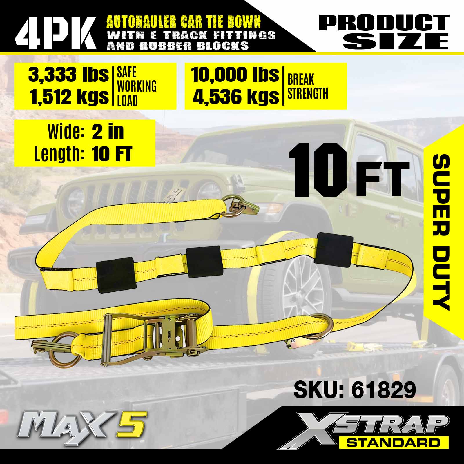 - Safety And Versatility: Designed with working load limit of 3,333 lbs and a break strength of 10,000 lbs,these vehicle straps meet DOT and CVSA standards,provide unmatched security for your cars, ATVs, UTVs, and race cars on any trailer