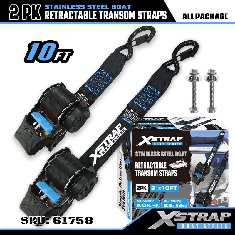 SMK is China Xstrap 61758 2” x 3.6’ 2PK Boat Retractable Transom Strap with Safety S Hooks 1000lb SWL Factory and Custom Xstrap 61758 2” x 3.6’ 2PK Boat Retractable Transom Strap with Safety S Hooks 1000lb SWL Suppliers. The product range includes tie-down straps, bungee cords, tow straps, lifting slings, hoists, and 4x4 accessories, widely used in transportation, logistics, outdoor, and industrial sectors. Its in-house brand XSTRAP enjoys strong recognition in global markets, alongside flexible OEM/ODM services for customized needs.