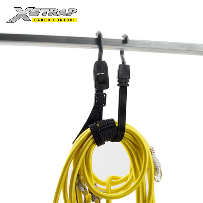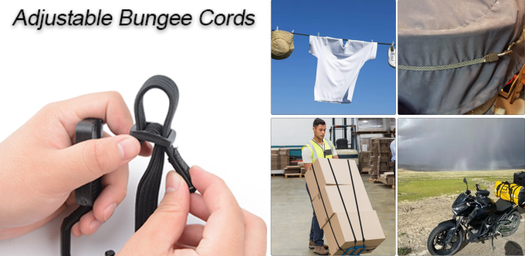 Adjustable bungee cords offer enhanced stability and reduced tendency to dig into items. They are versatile and suitable for a wide range of applications, including equipment, organizing storage, tie down luggage or tarps, secure outdoor gear, garden, garage, or travel applications.