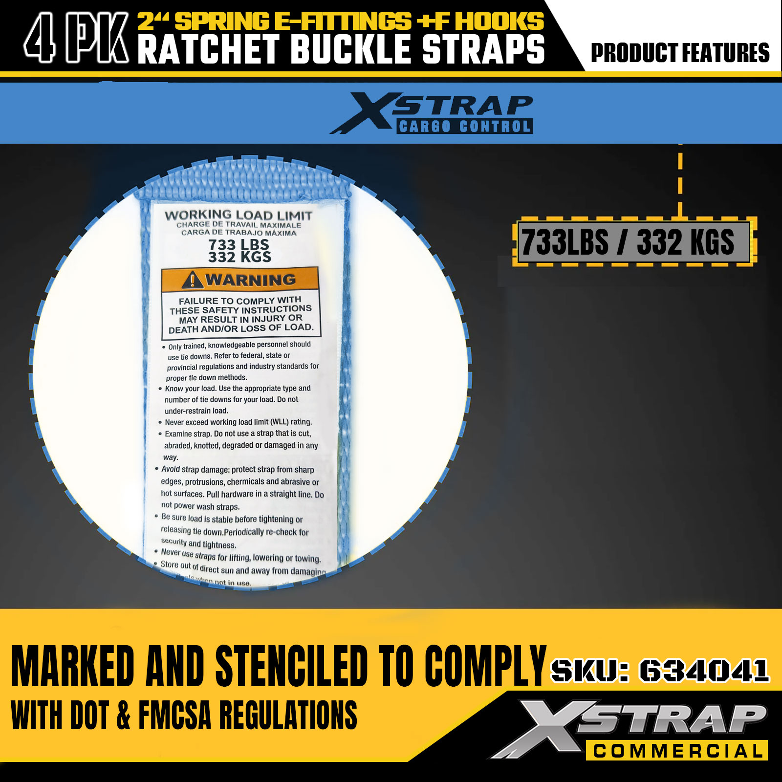 - Legible Safety Indicators: Each strap is clearly labeled with the safe working load (SWL) of 733 lbs and maximum load capacity of 332 lbs, offering essential safety instructions for correct and secure application.