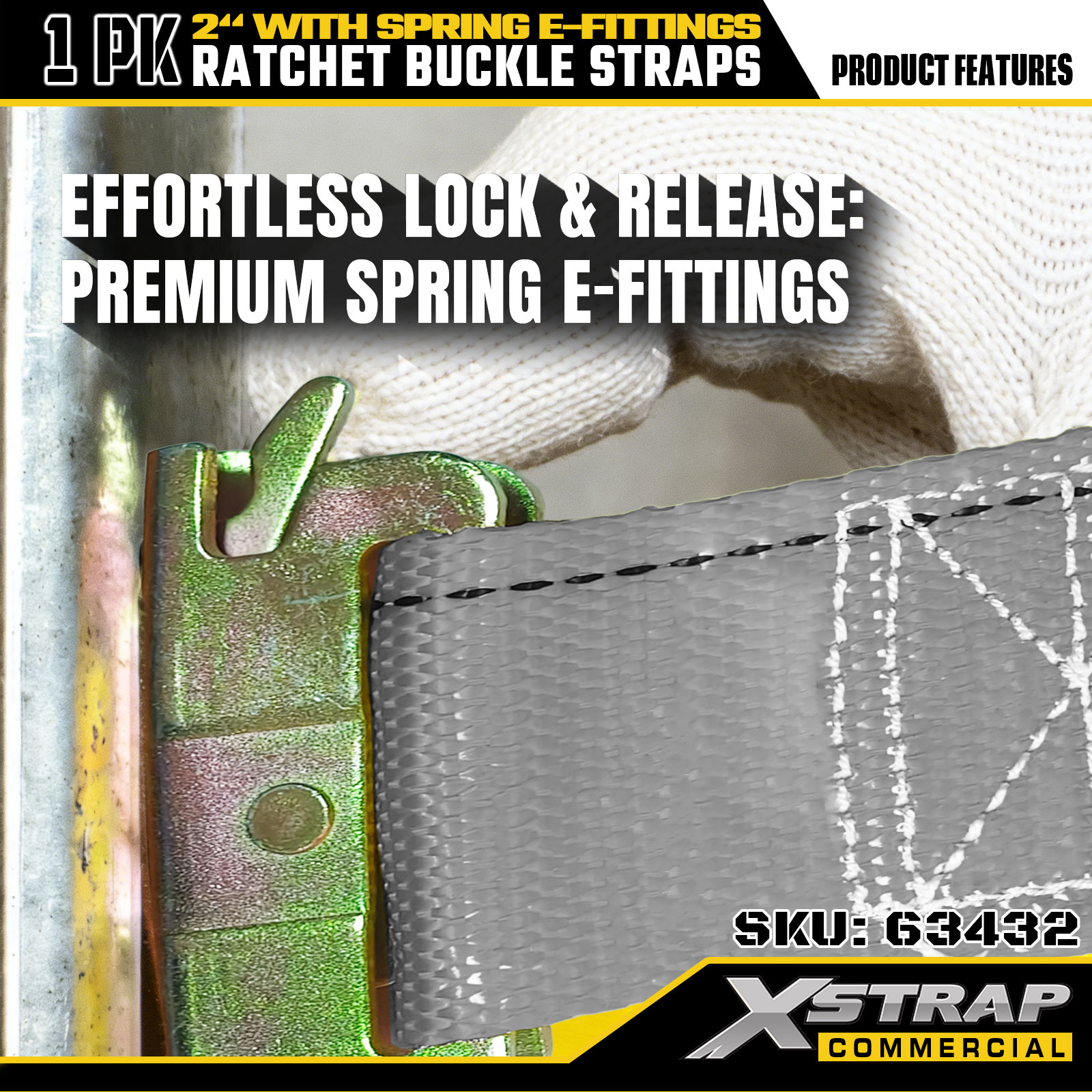 SMK is China Xstrap 63432 2"x 16' 1PK Ratchet Straps with Spring E-Fittings 1467lb SWL Factory and Custom Xstrap 63432 2"x 16' 1PK Ratchet Straps with Spring E-Fittings 1467lb SWL Suppliers.The product range includes tie-down straps, bungee cords, tow straps, lifting slings, hoists, and 4x4 accessories, widely used in transportation, logistics, outdoor, and industrial sectors. Its in-house brand XSTRAP enjoys strong recognition in global markets, alongside flexible OEM/ODM services for customized needs.