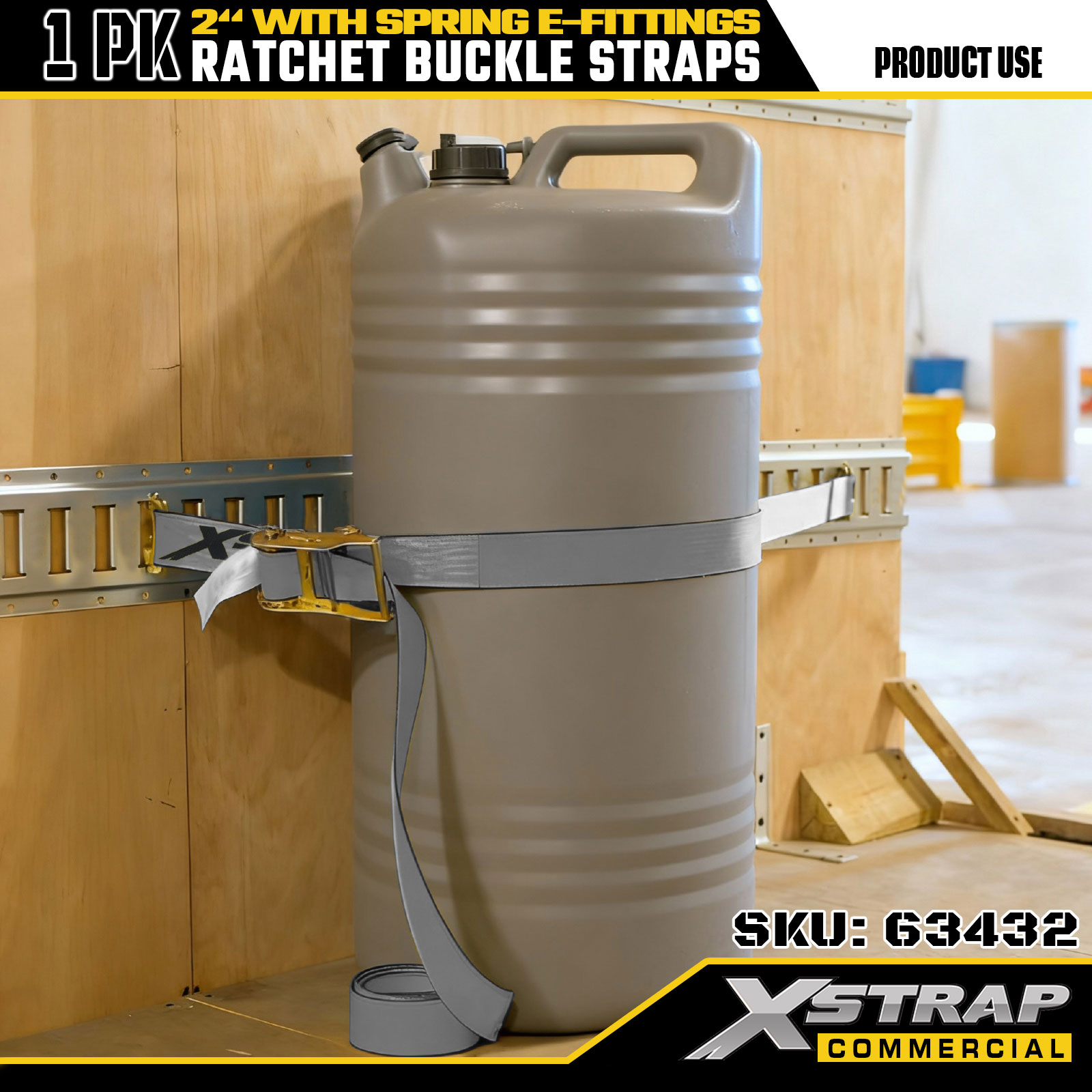 2" x 16' 1PK Ratchet Buckle Straps with Spring E-Fittings