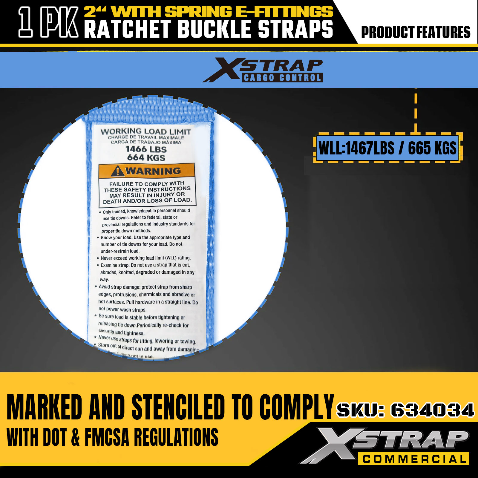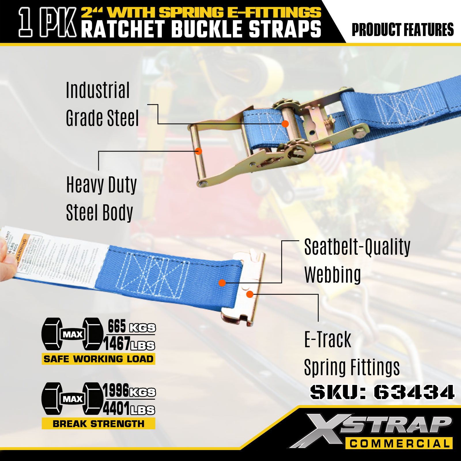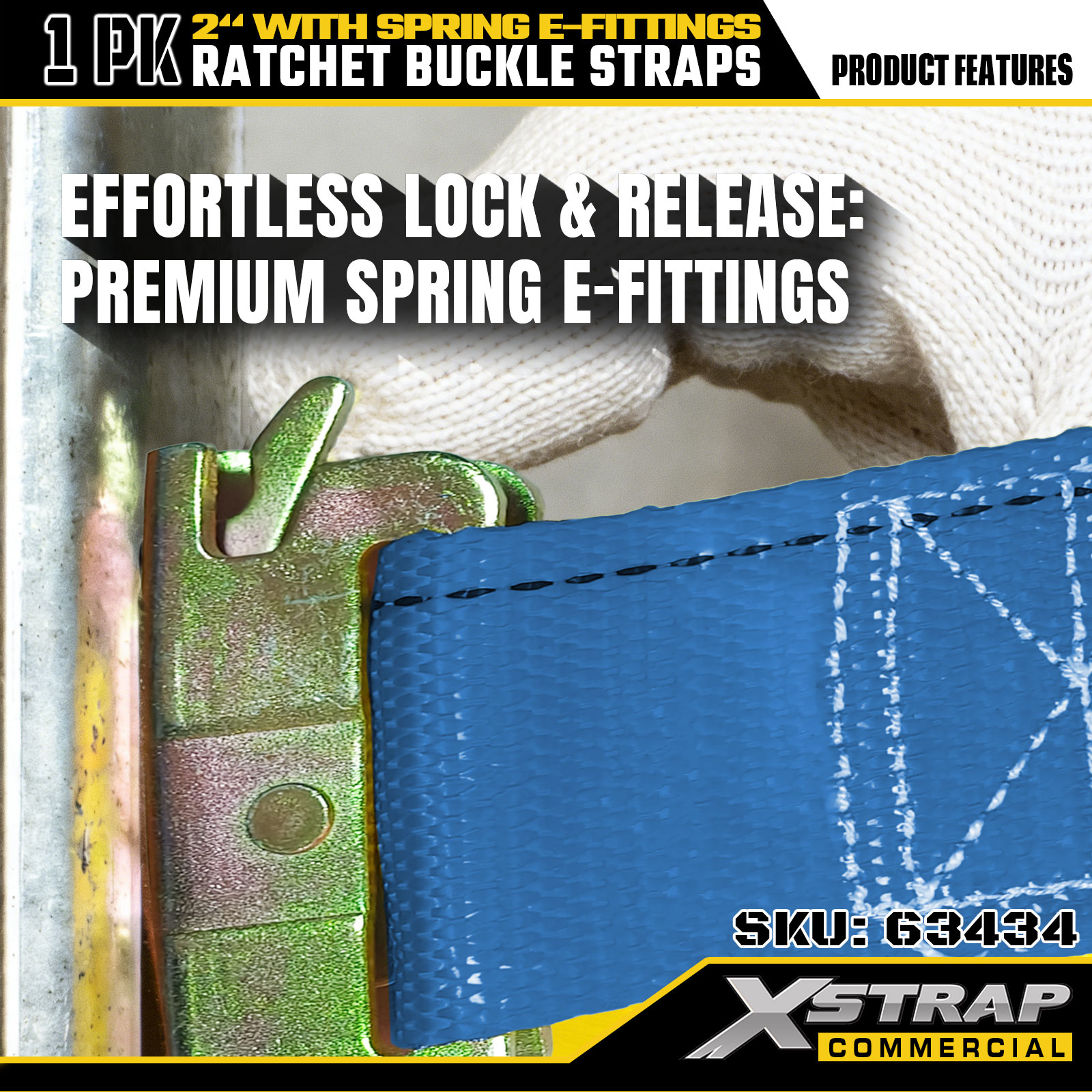 Xstrap 1 Pack Ratchet Tie-Down Straps, 2" x 20' Polyester Cargo Securing Straps, 1467 lbs Safe Working Load & 4401 lbs Breaking Strength, with Spring E-Fittings for Truck, Mower, ATVs
