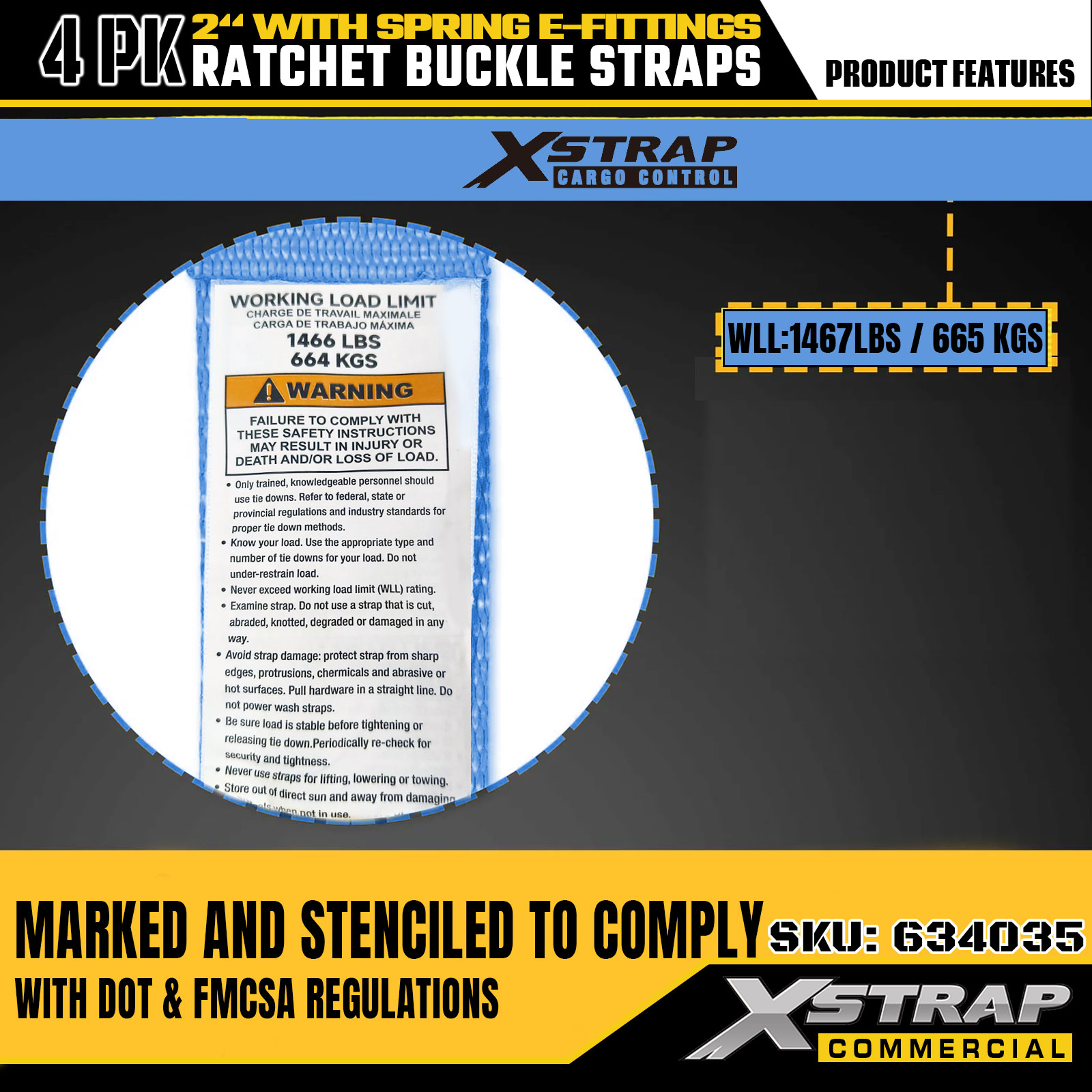 - Clear SWL & Breaking Strength Labels for Overload Prevention: Each strap is clearly labeled with a 1467LBS safe working load (SWL) and 4401LBS maximum breaking strength, providing essential safety information to prevent overloading.