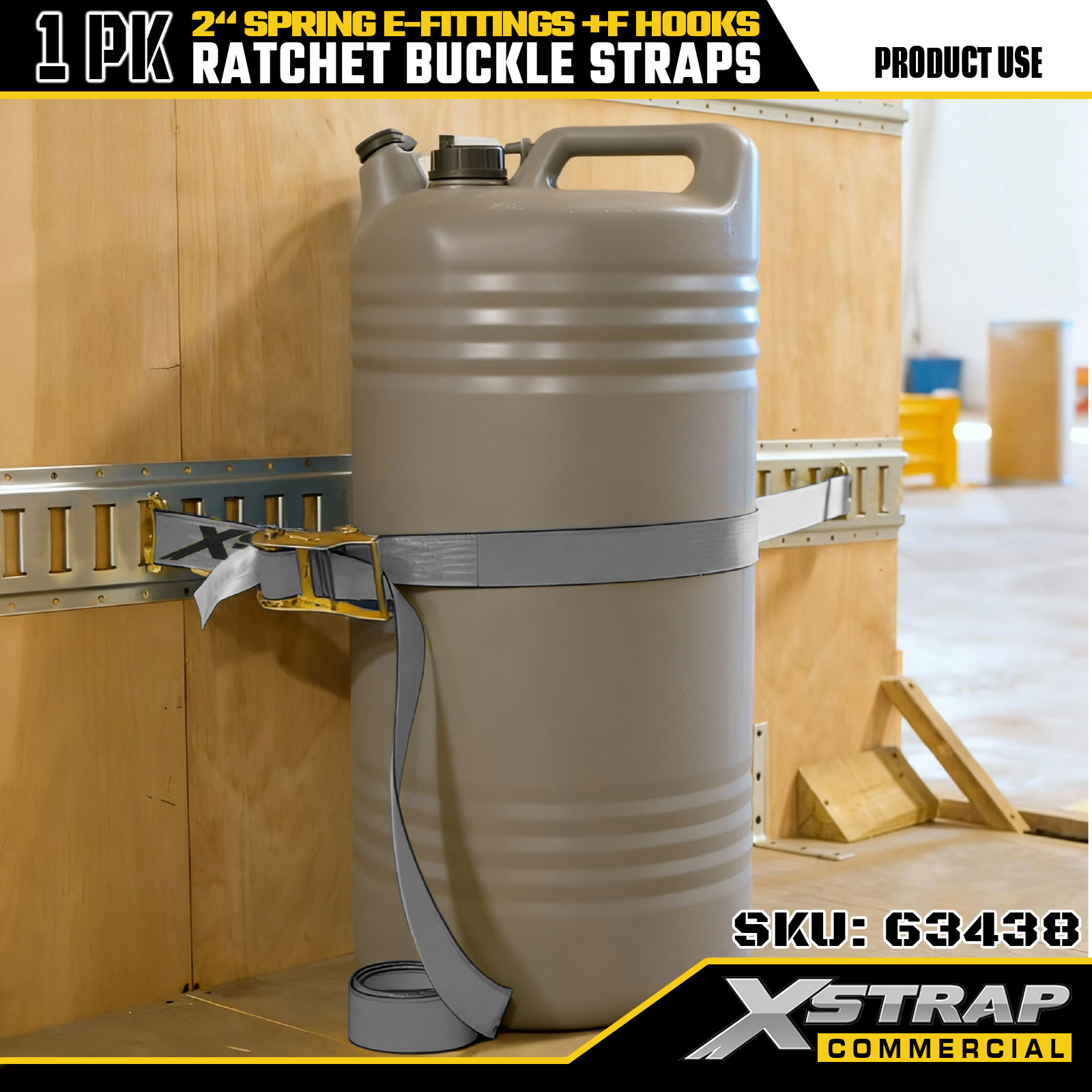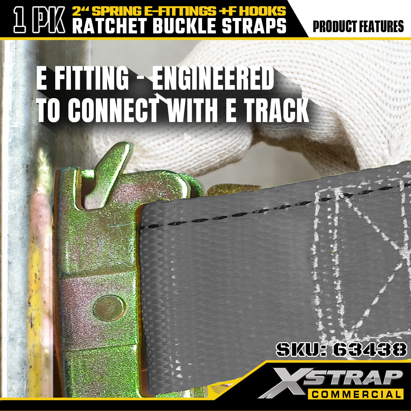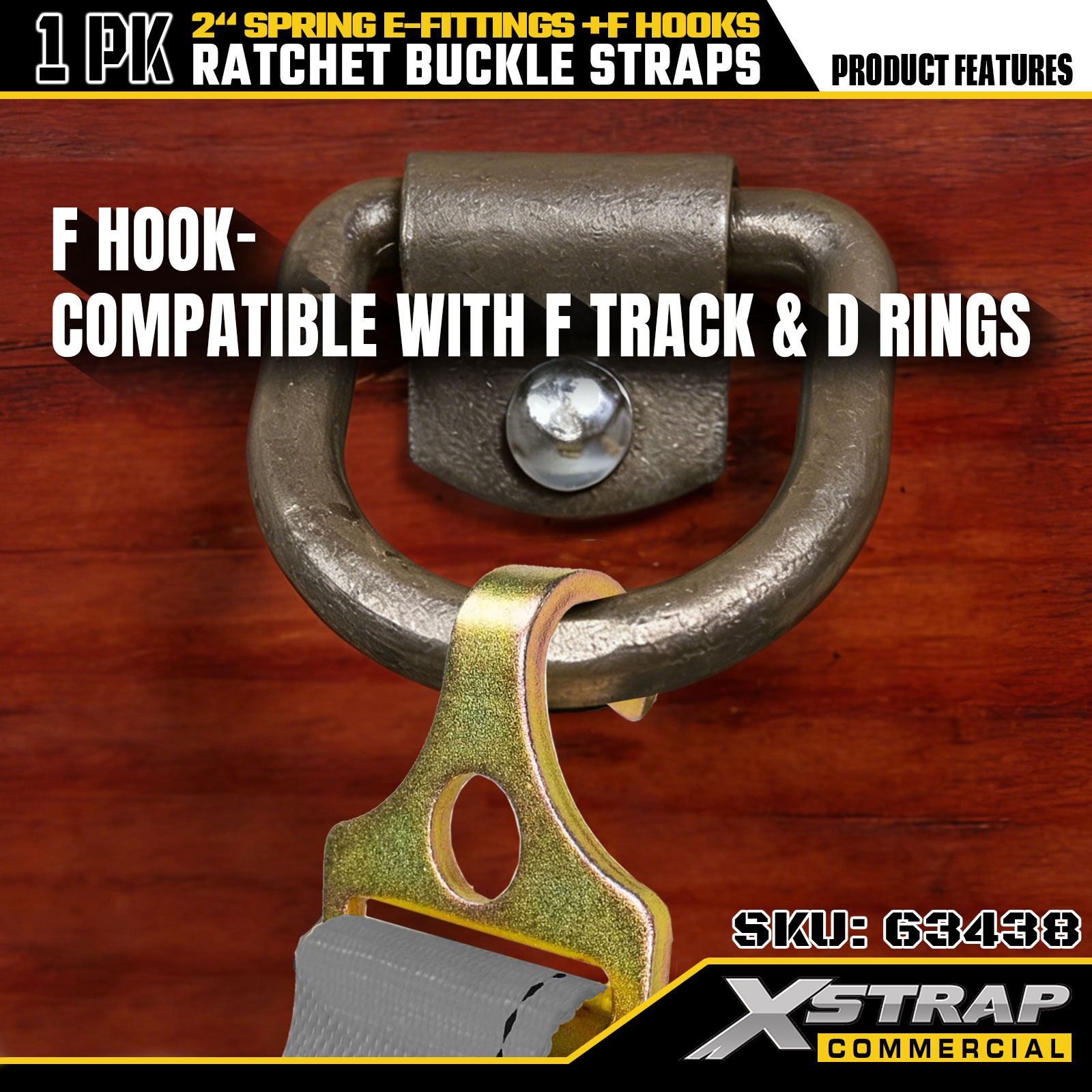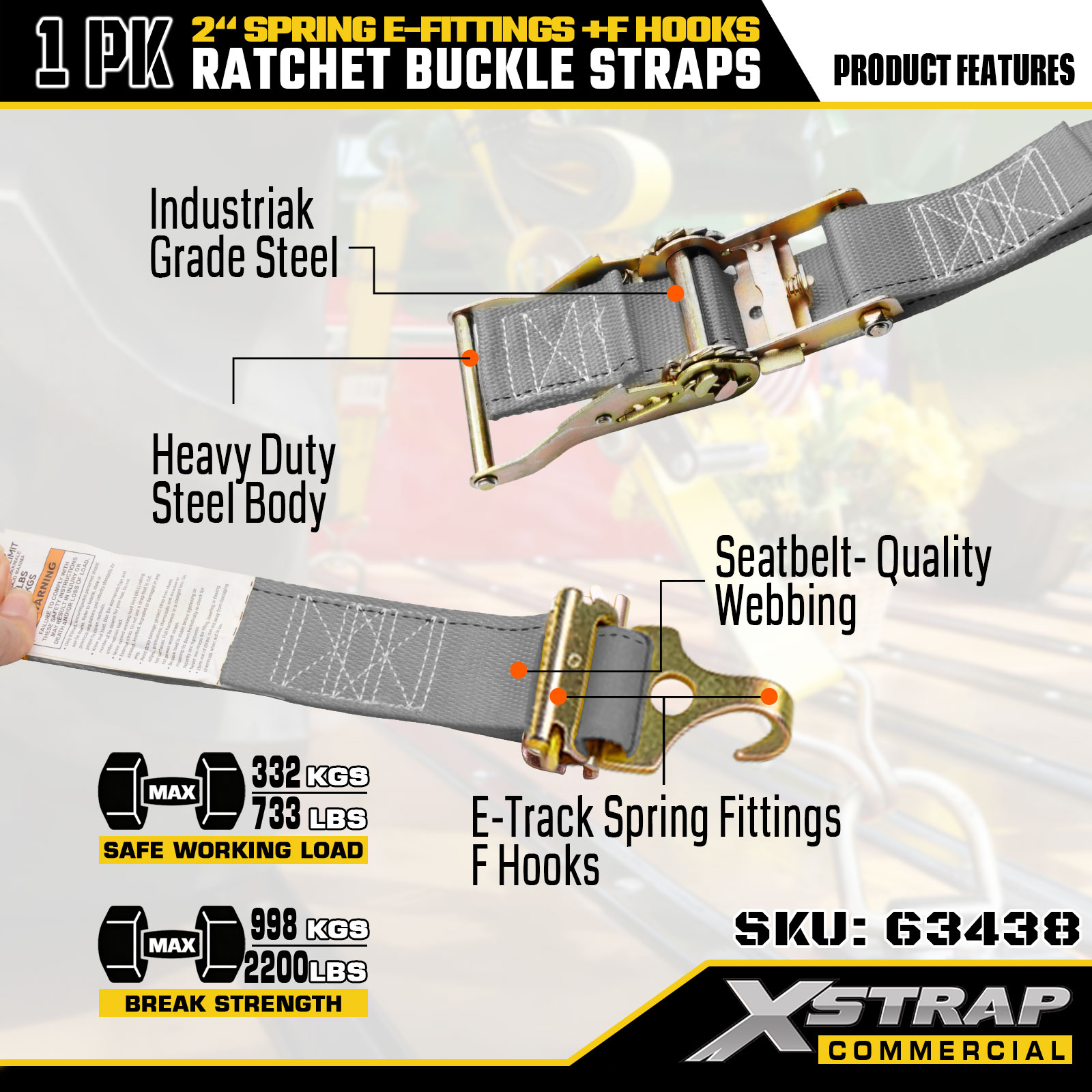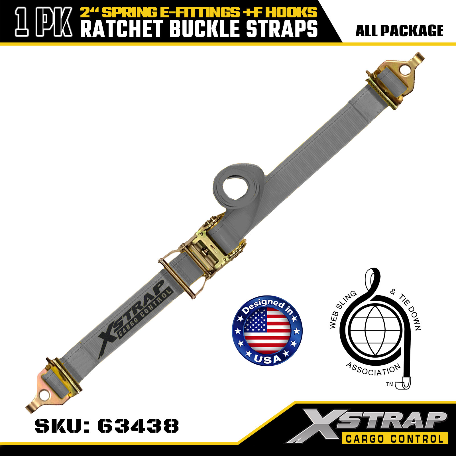 Xstrap 1 Pack Ratchet Tie-Down Straps 2" x 16' Polyester with Spring E-Fittings and F Hooks, 733 lbs SWL & 332 lbs Breaking Strength for Truck, Moving, General Cargo Transport