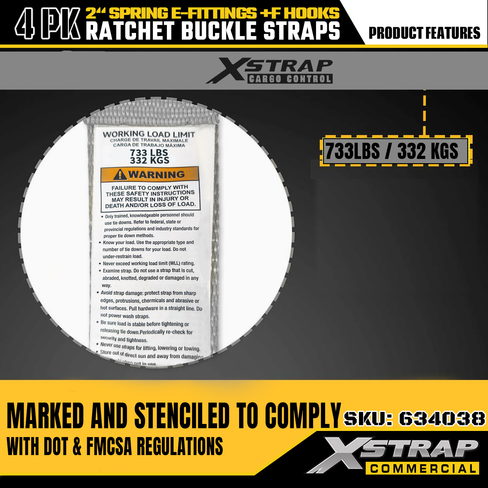 - Clear Safety Markings: Each strap is labeled with 733 lbs SWL and 332 lbs breaking strength, providing essential safety guidance to avoid overloading. Safe for securing boxes, furniture, appliances, etc.
