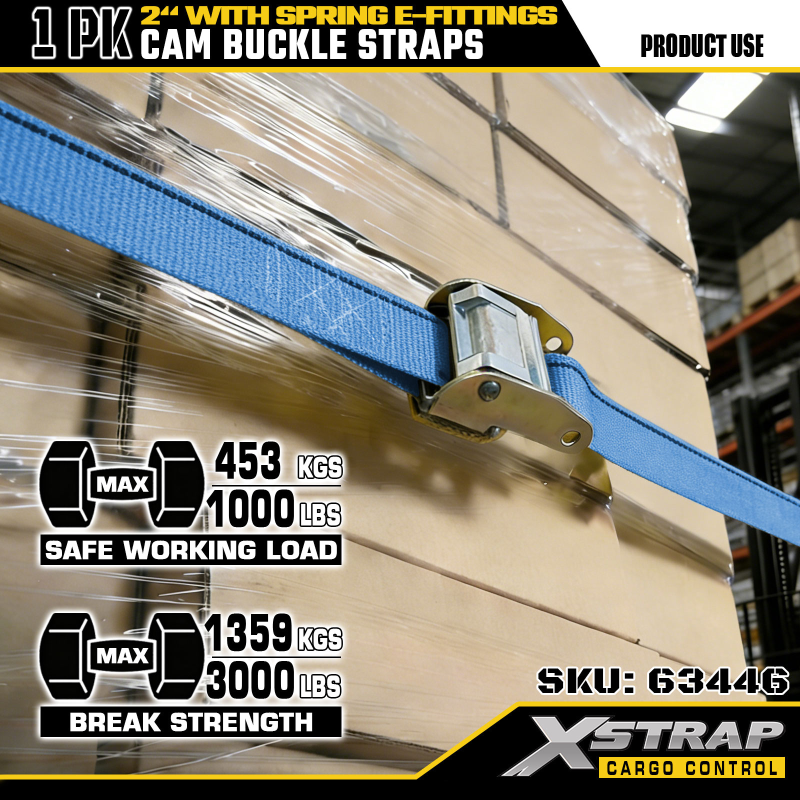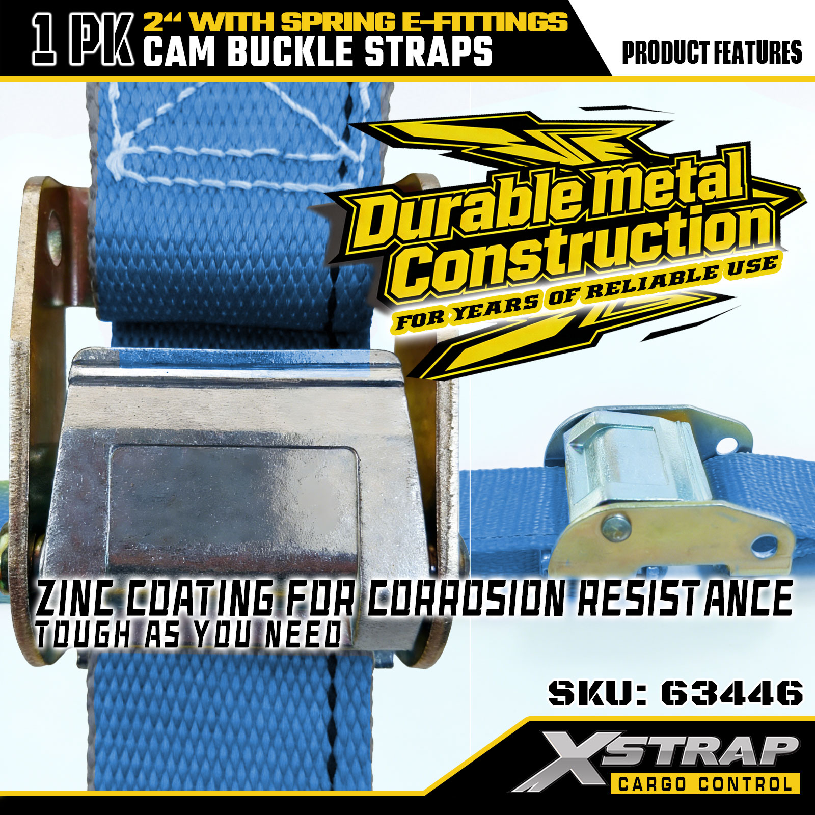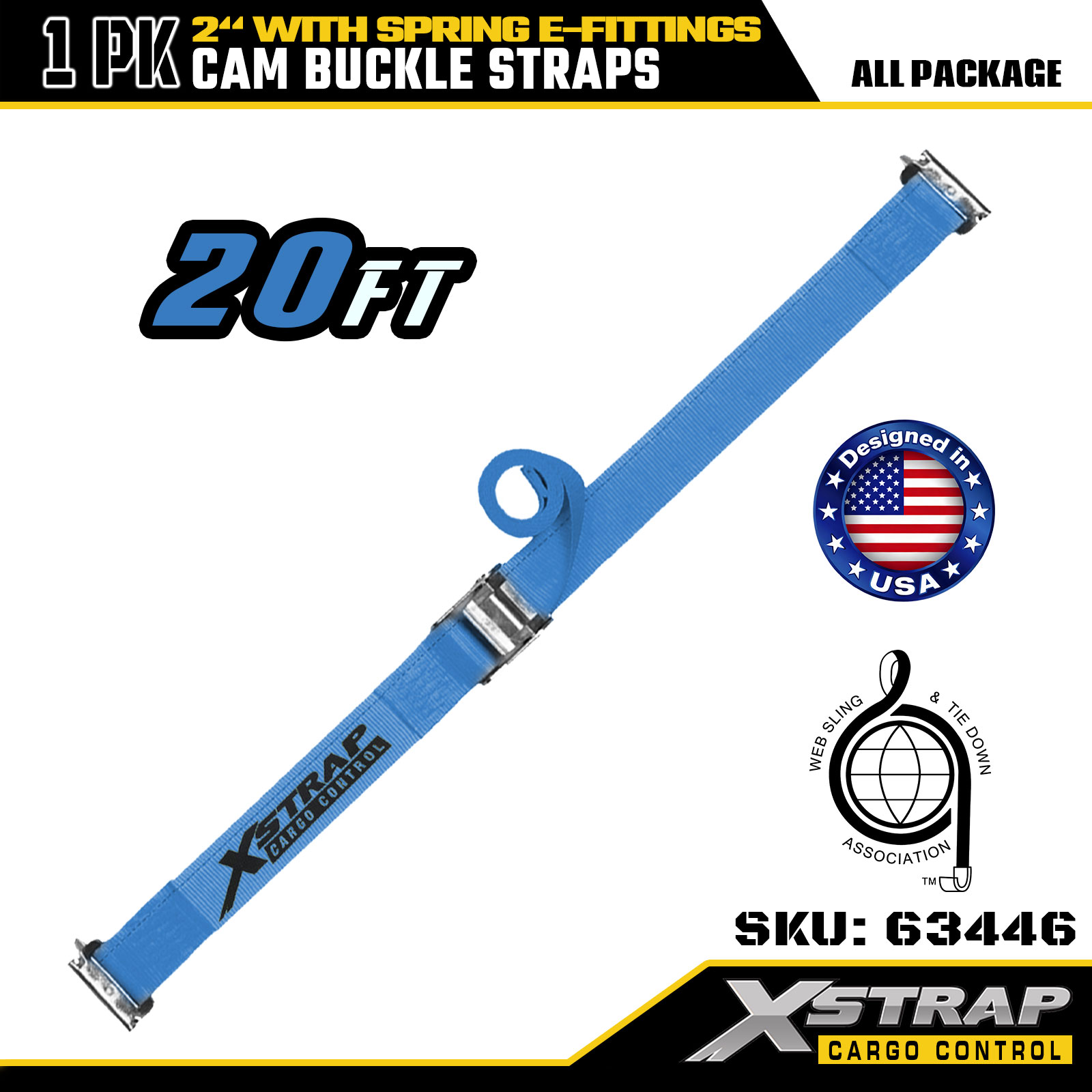 Xstrap 63446 Heavy-Duty Ratchet Strap 2" x 20' (1PK) - Blue Polyester with Spring E-Fittings & F Hooks, 733 lbs SWL & 332 lbs Breaking Strength for Cargo Control, Moving & Transport