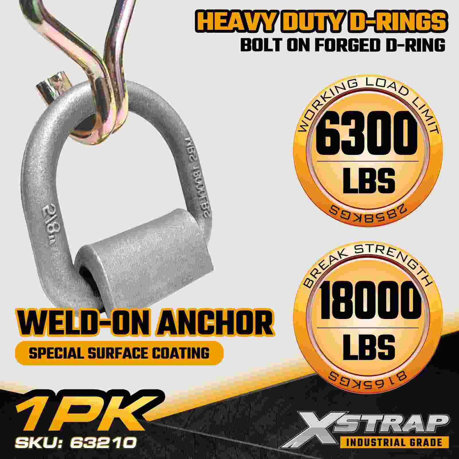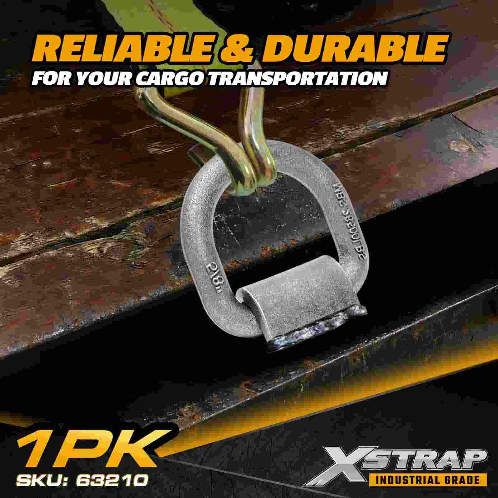 The Xstrap 63210 5/8" Forged D-Ring with Weld-On Clip is designed as a mid-range strength anchor point for utility trailers, service trucks, and equipment transport platforms. Crafted from forged steel, this 5/8" D-ring offers a 6,300 lbs (2,857 kgs) Working Load Limit, making it suitable for securing medium-weight machinery, cargo pallets, and recreational vehicles. Its weld-on base provides a fixed, durable mounting solution that stands up to repeated loading cycles and outdoor exposure.