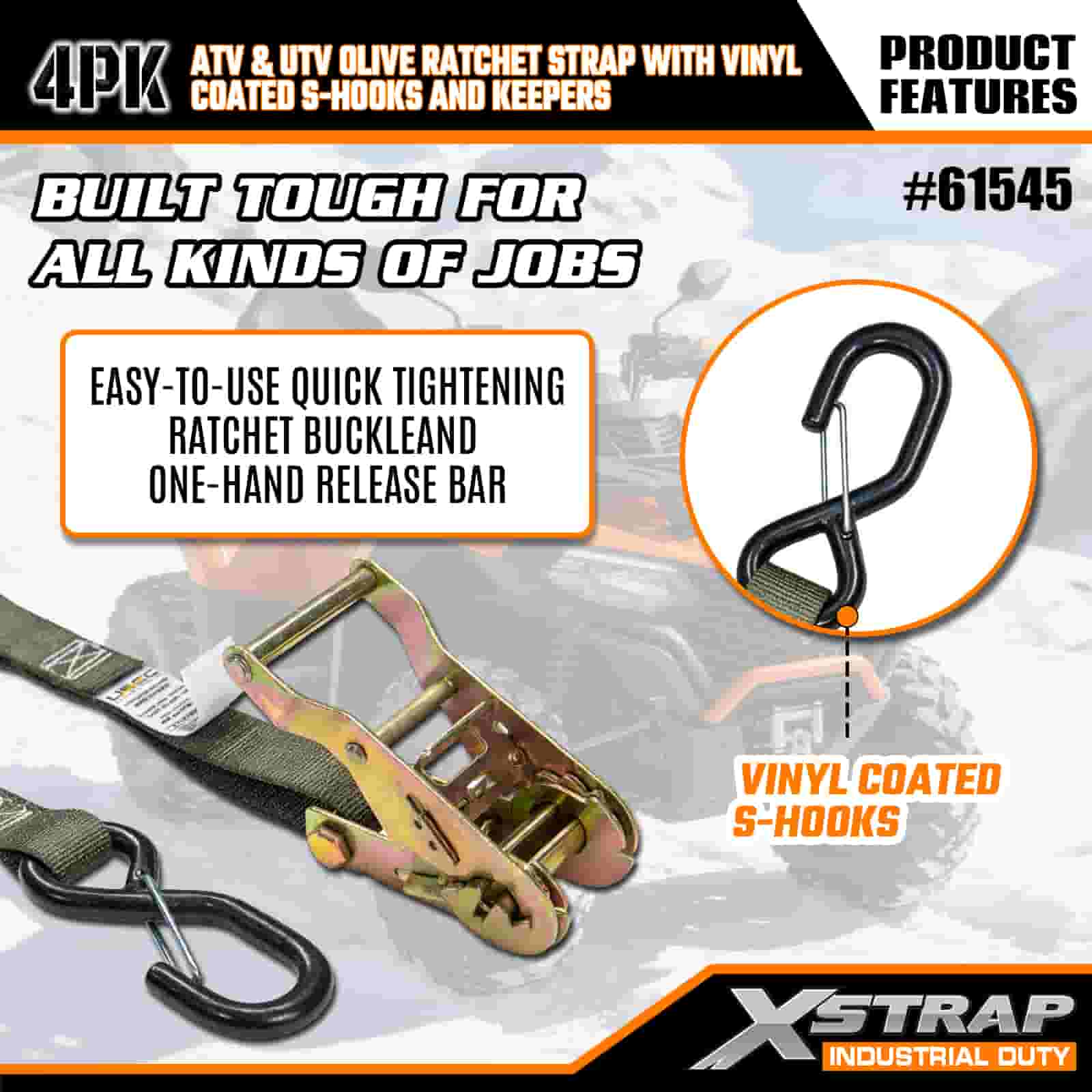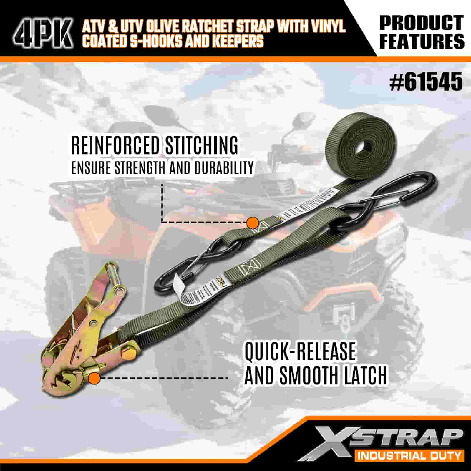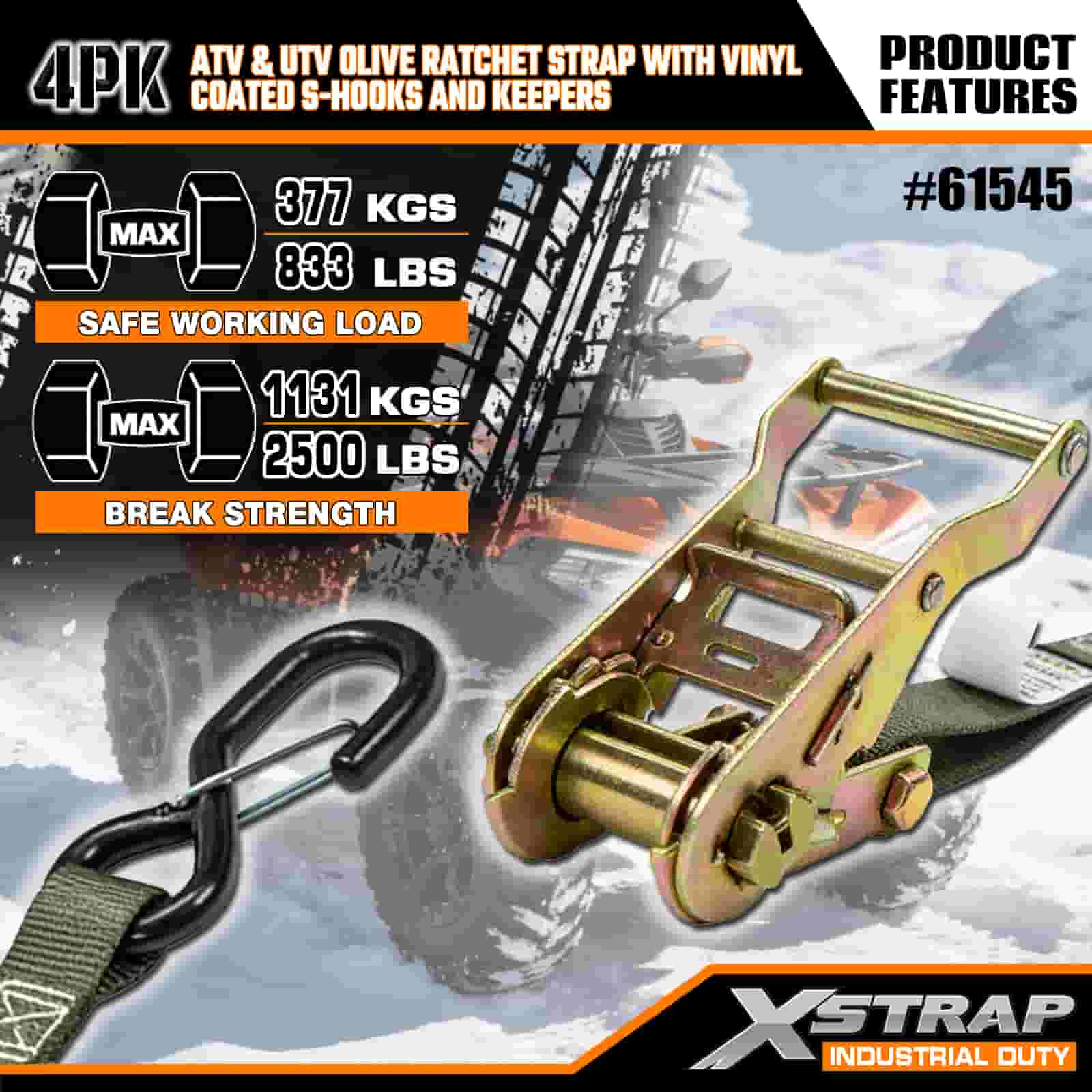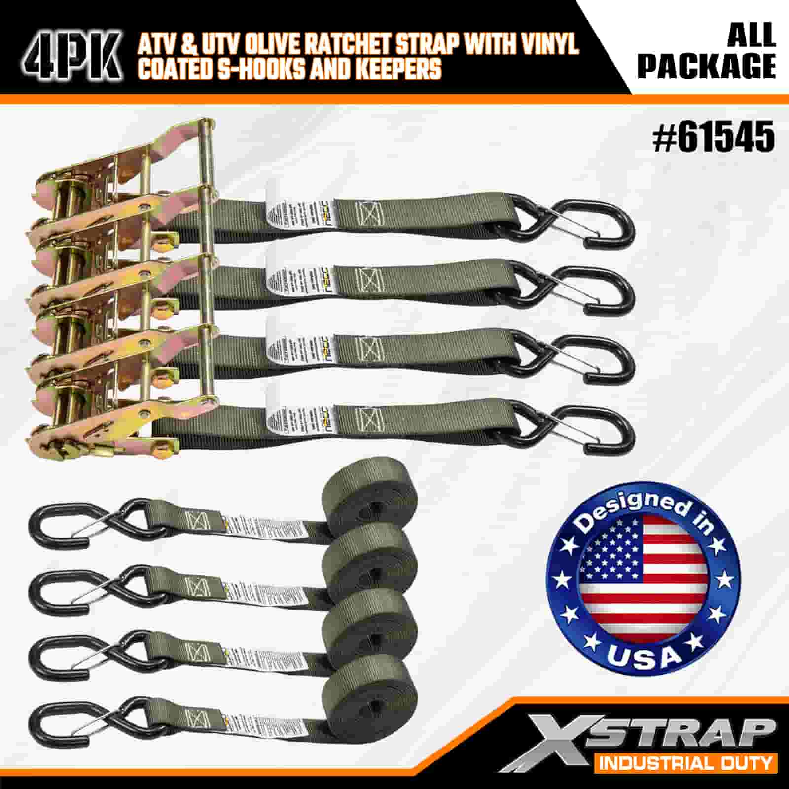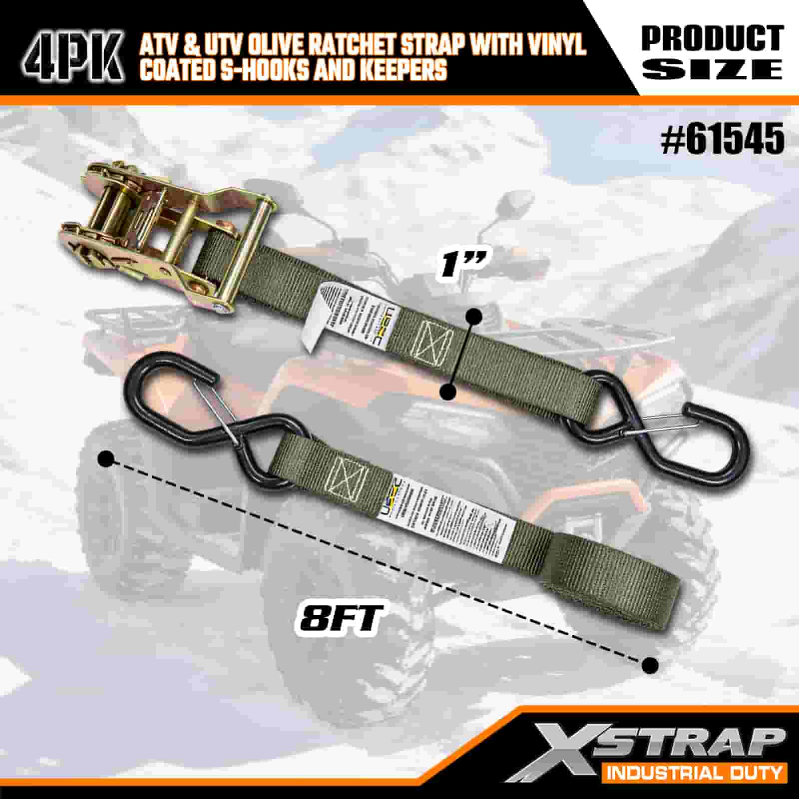 - 4 Pack for Total Coverage: This set includes 4 straps, giving you enough to secure both the front and rear of your ATV or UTV. The 8 foot length fits truck beds, trailers, or tie down points, so you can get a stable hold every time.