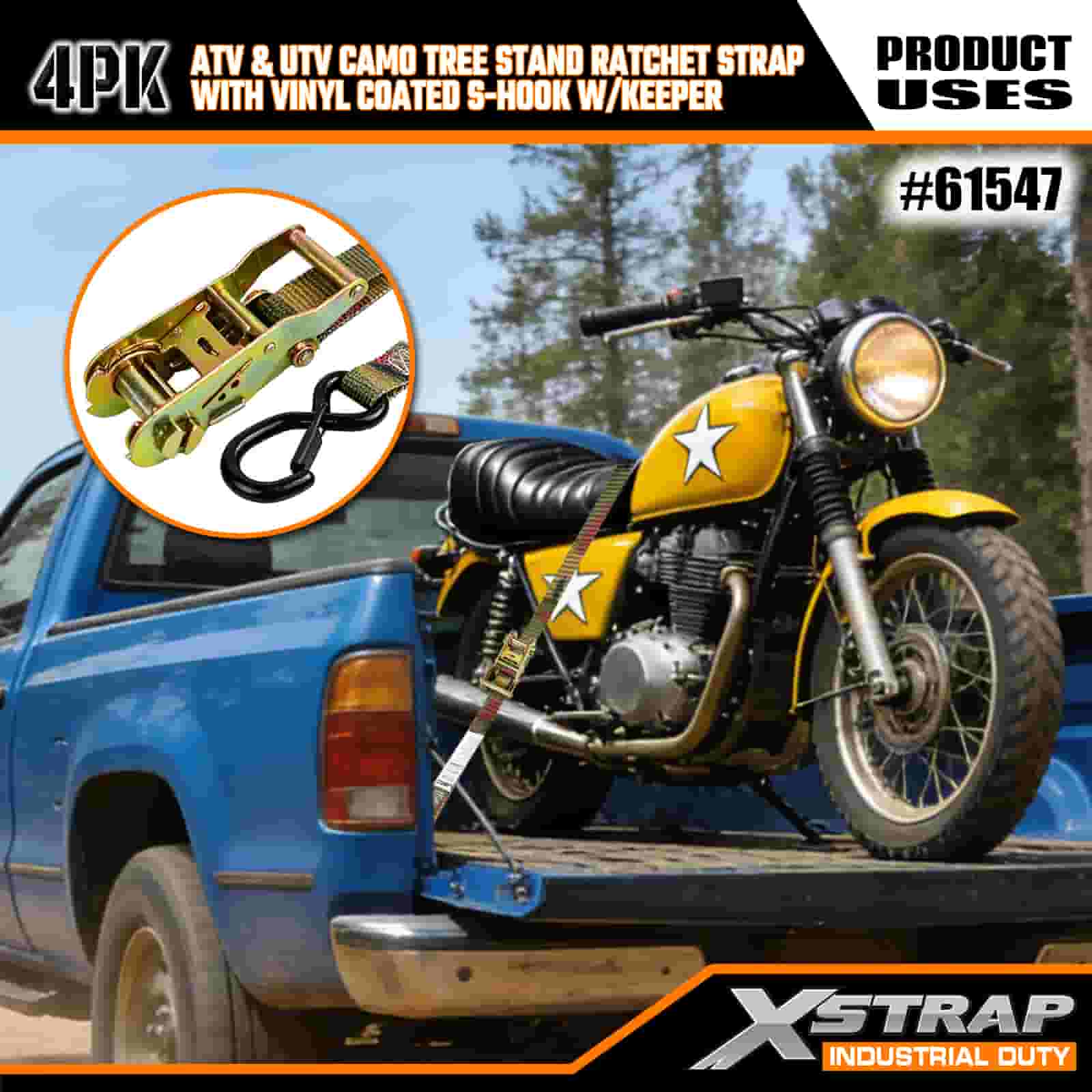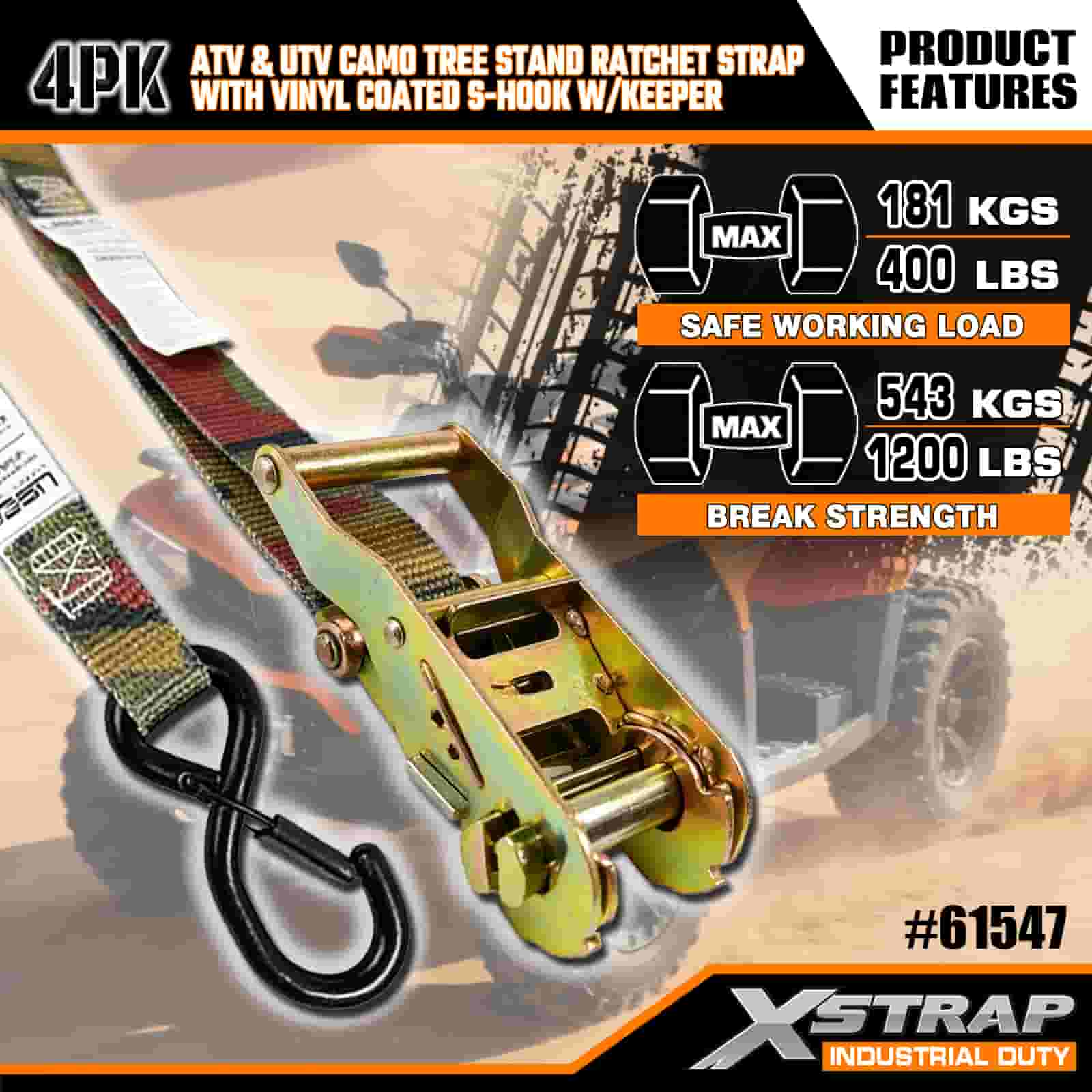 - 4 Pack for Full Coverage:This set includes 4 straps, giving you enough to secure both the front and rear of your ATV or UTV. The 8 foot length fits truck beds, trailer tie down points, and tree stand anchors, so you get a stable hold every time.