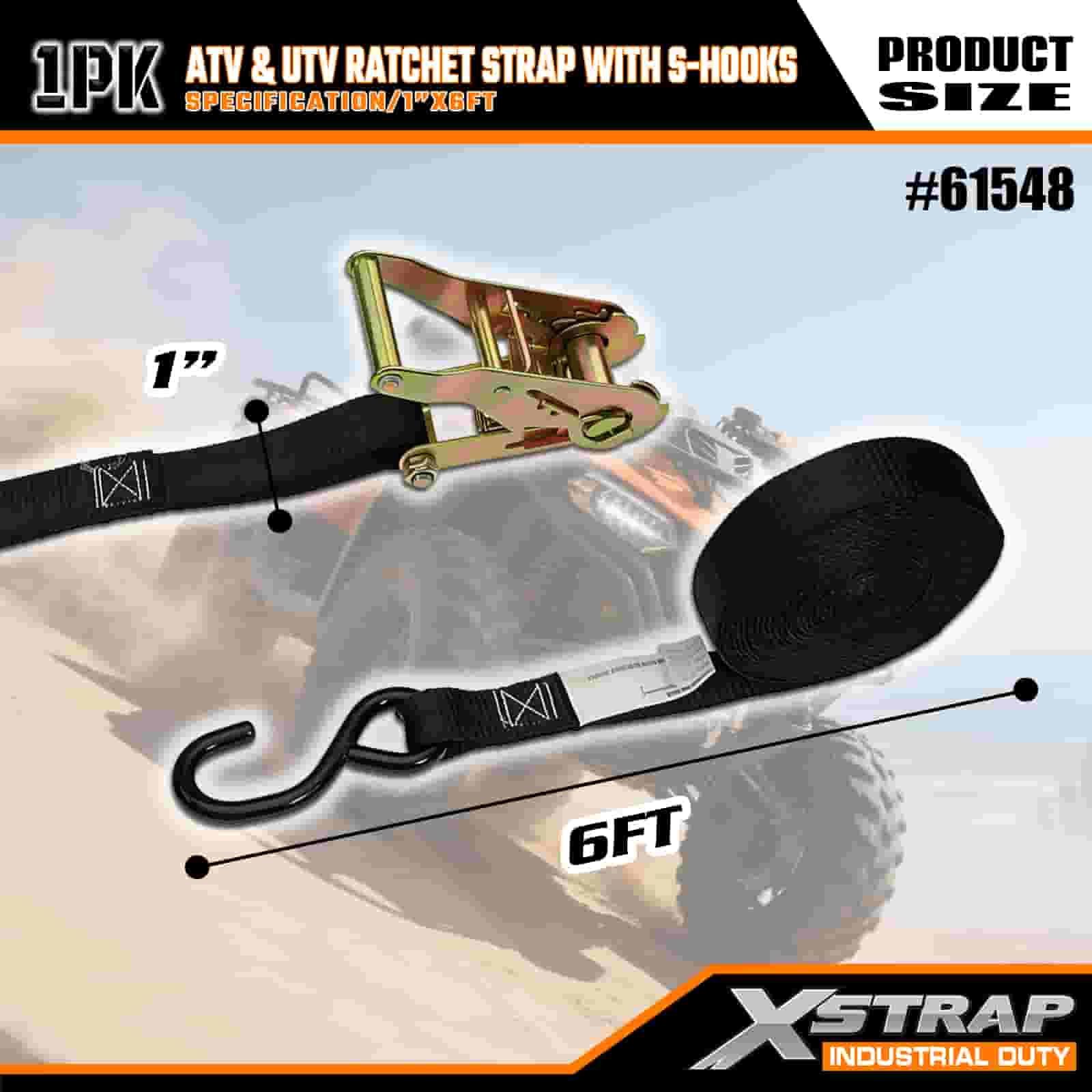 1” x 6’ ATV & AUV Ratchet Strap with S Hooks