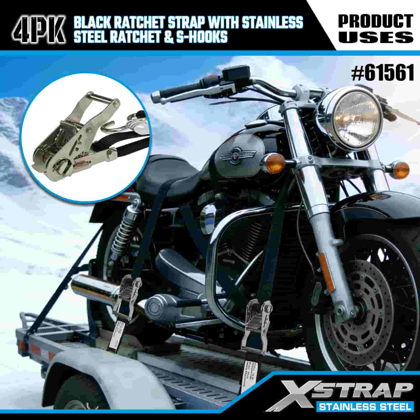 - Compact Powerhouse, Built for Motorcycle & ATV Hauling: Designed specifically for securing motorcycles and ATVs on trailers, this 4-pack of ratchet straps delivers a reliable hold without the bulk. XStrap’s 20+ years of cargo control expertise ensures your ride stays locked in place, even on bumpy mountain roads.