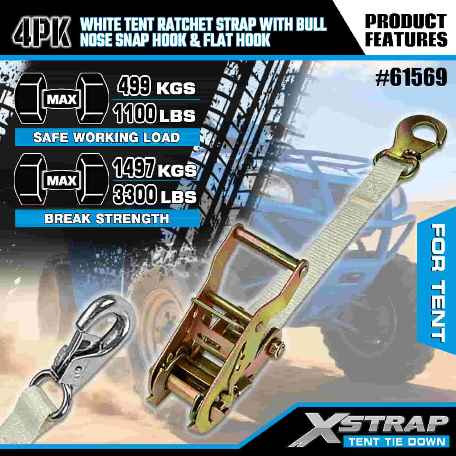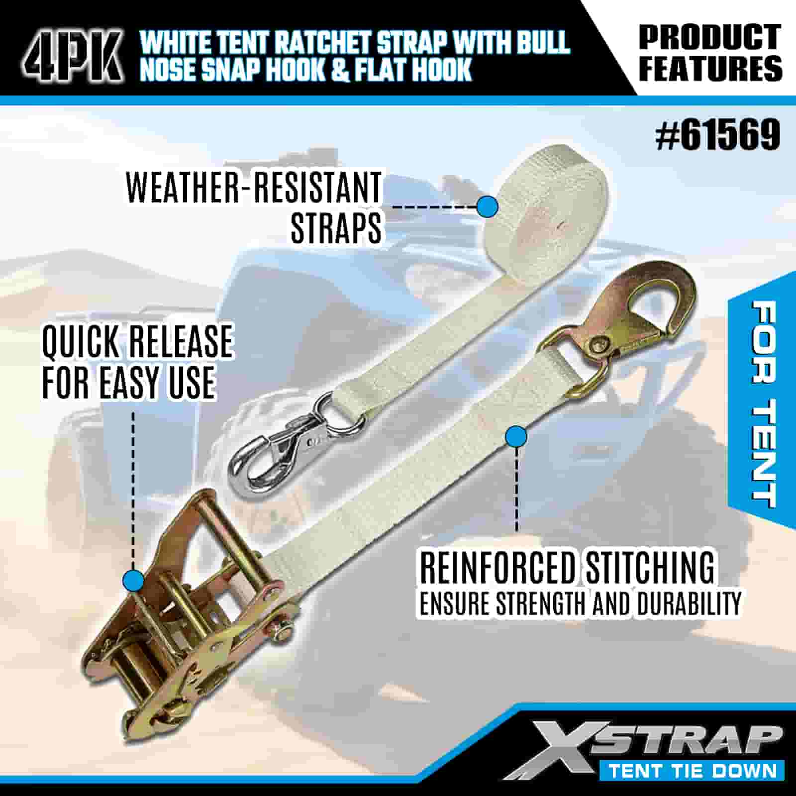 - Event & Camping Anchor, Built for Strong Winds: Engineered to secure large event tents, canopies, and party shelters, this 4-pack of ratchet straps delivers uncompromising hold even in gusty conditions. Backed by XStrap’s 20+ years of cargo control expertise, your shelter stays anchored through rain, wind, and heavy use.