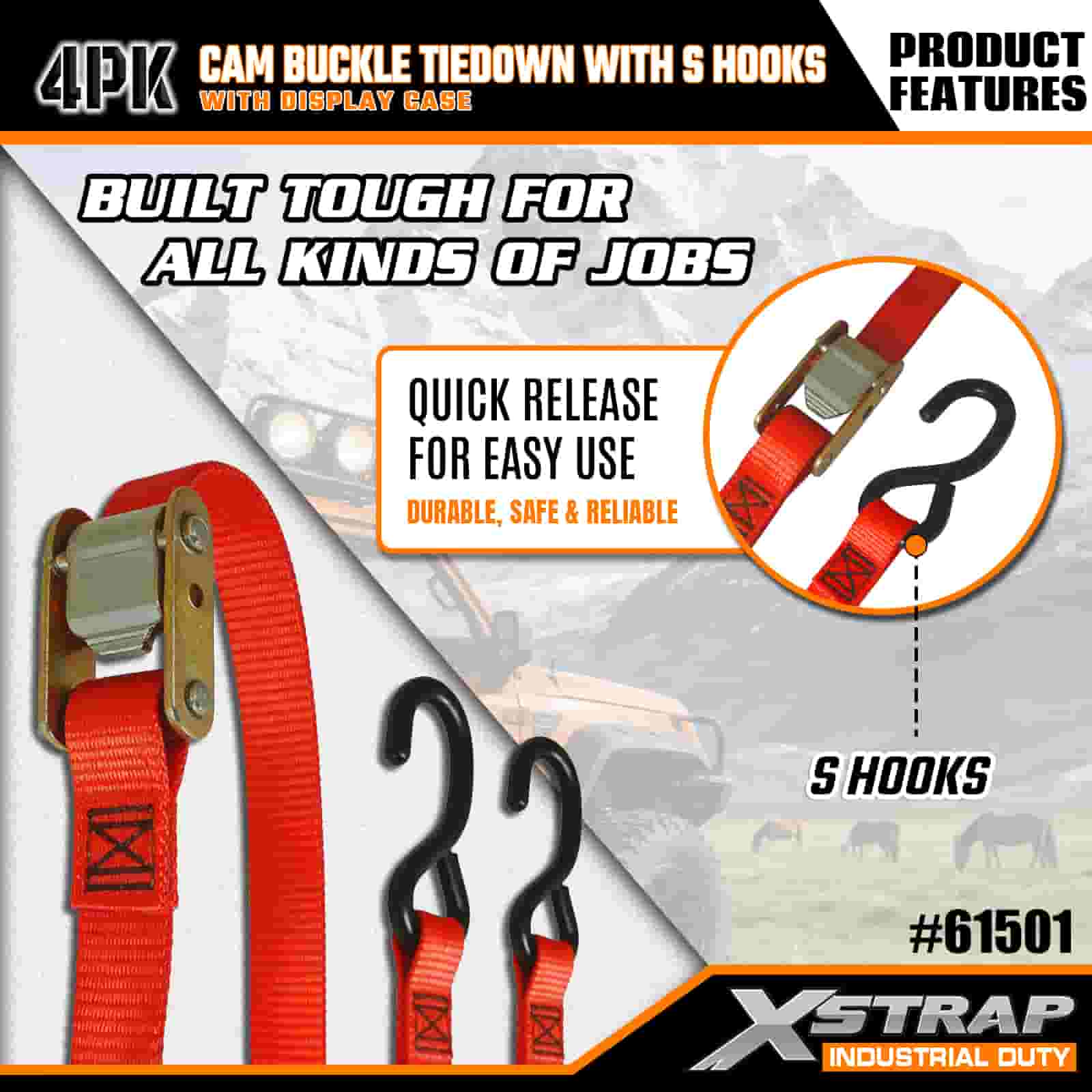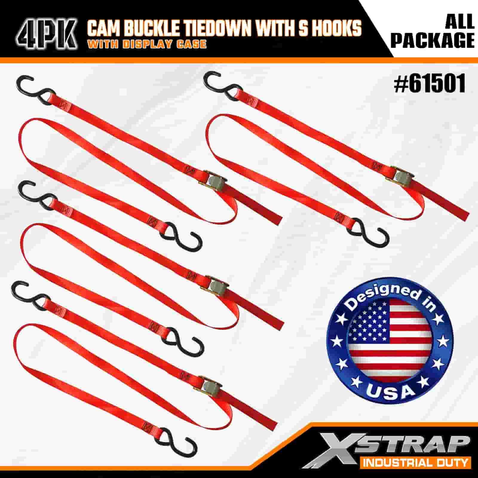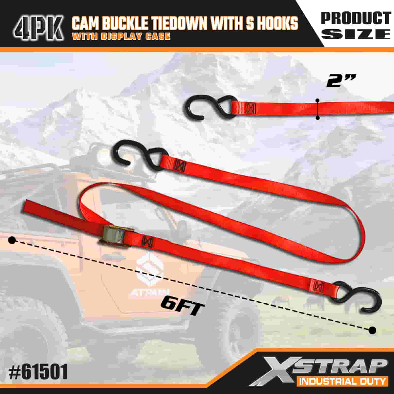 2” x 6’ 4PK Cam Buckle Tie Down with S Hooks