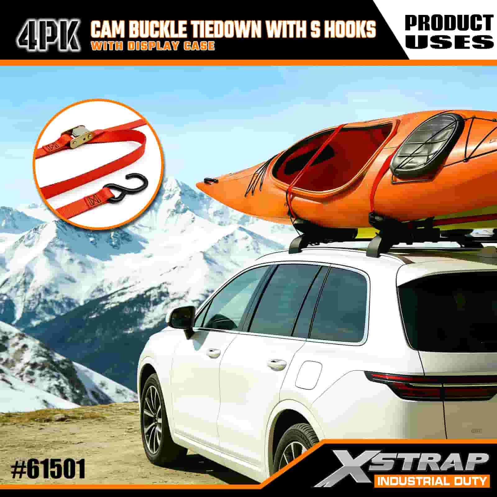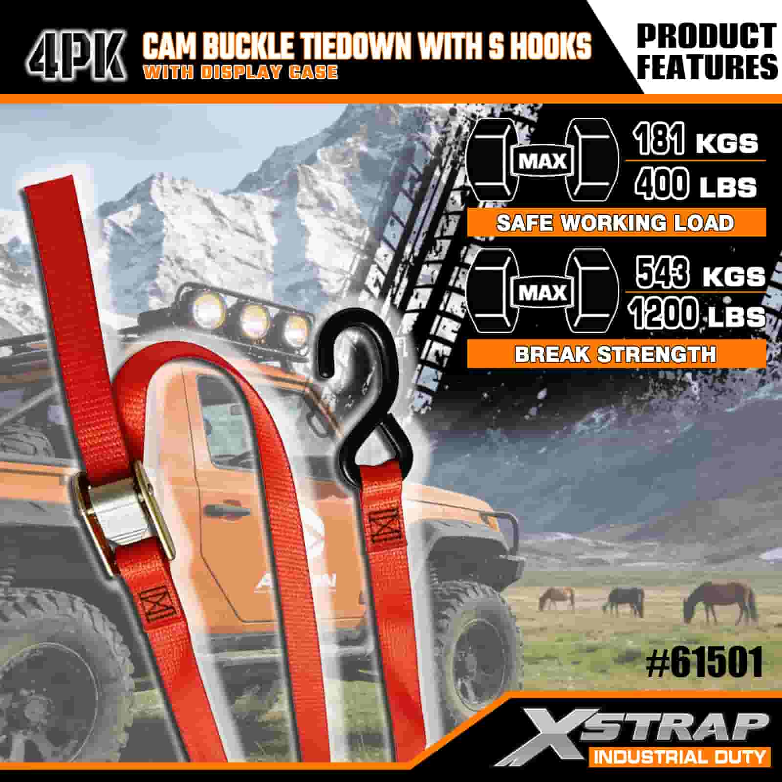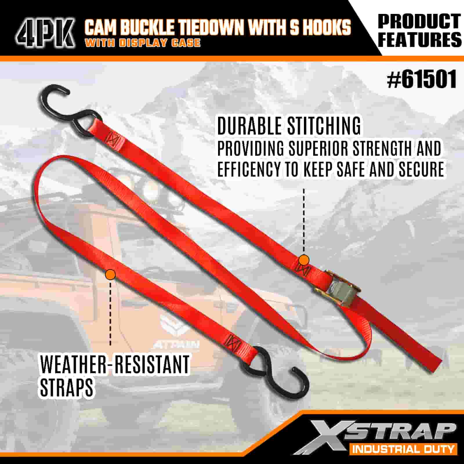 2” x 6’ 4PK Cam Buckle Tie Down with S Hooks