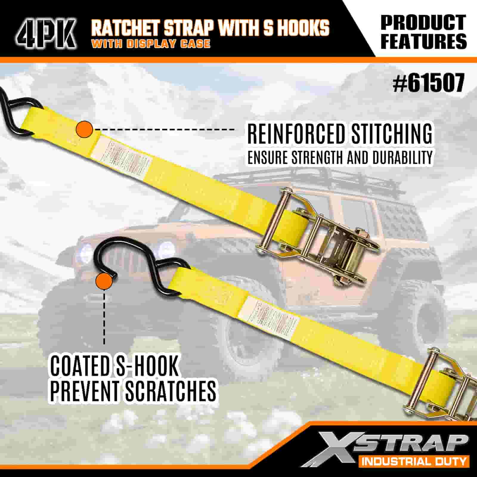 1” x 15’ 4PK Ratchet Strap with S Hooks