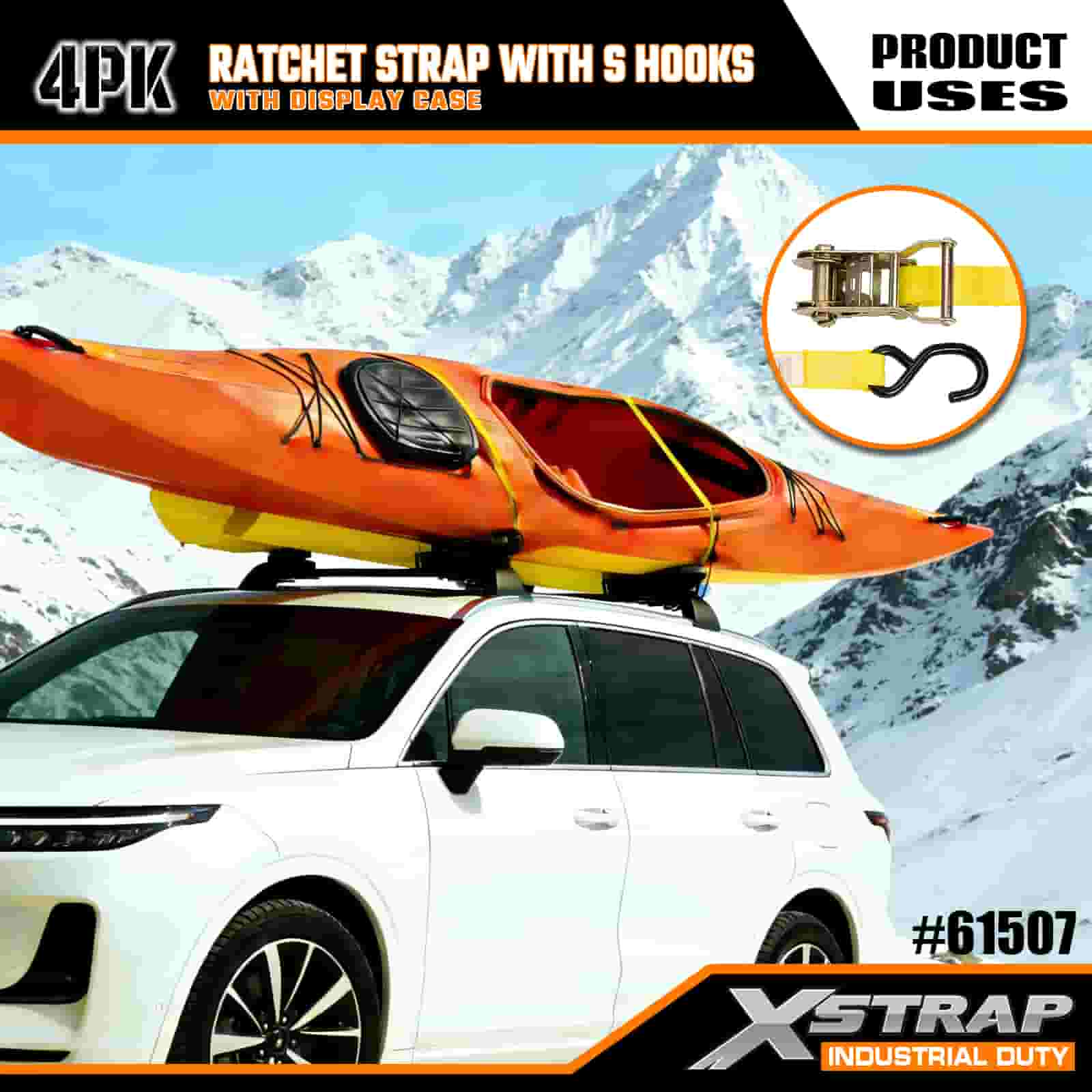 - 4-Pack with Space-Saving Storage Spools: Sold as a convenient 4-piece set with custom storage spools, keeping straps organized and tangle-free when not in use. Each strap measures 1 inch wide × 15 feet long—perfect for securing kayaks, motorcycles, furniture, and general freight.