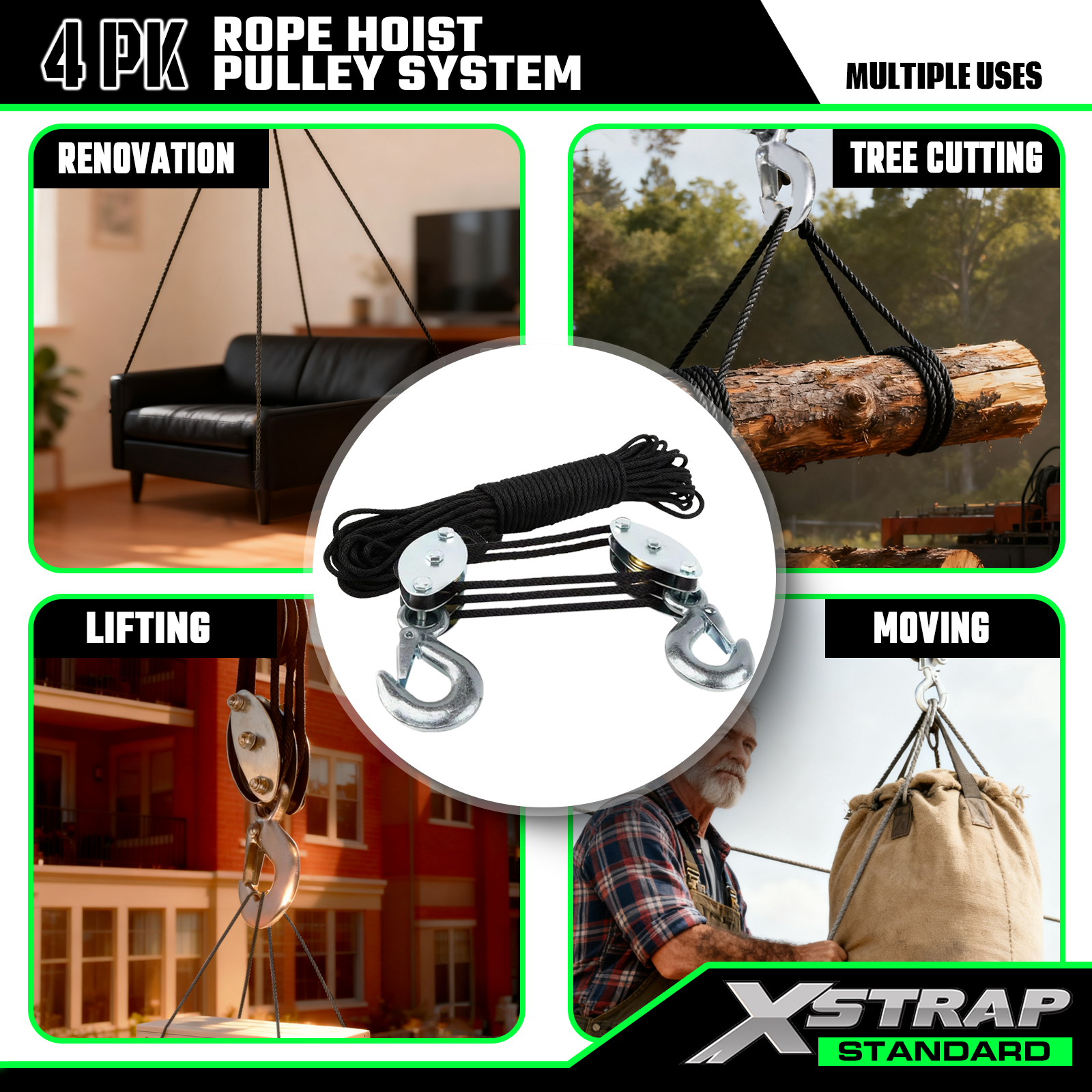 XSTRAP STANDARD AHLT0001 Rope Hoist Pulley System 1000LB Capacity