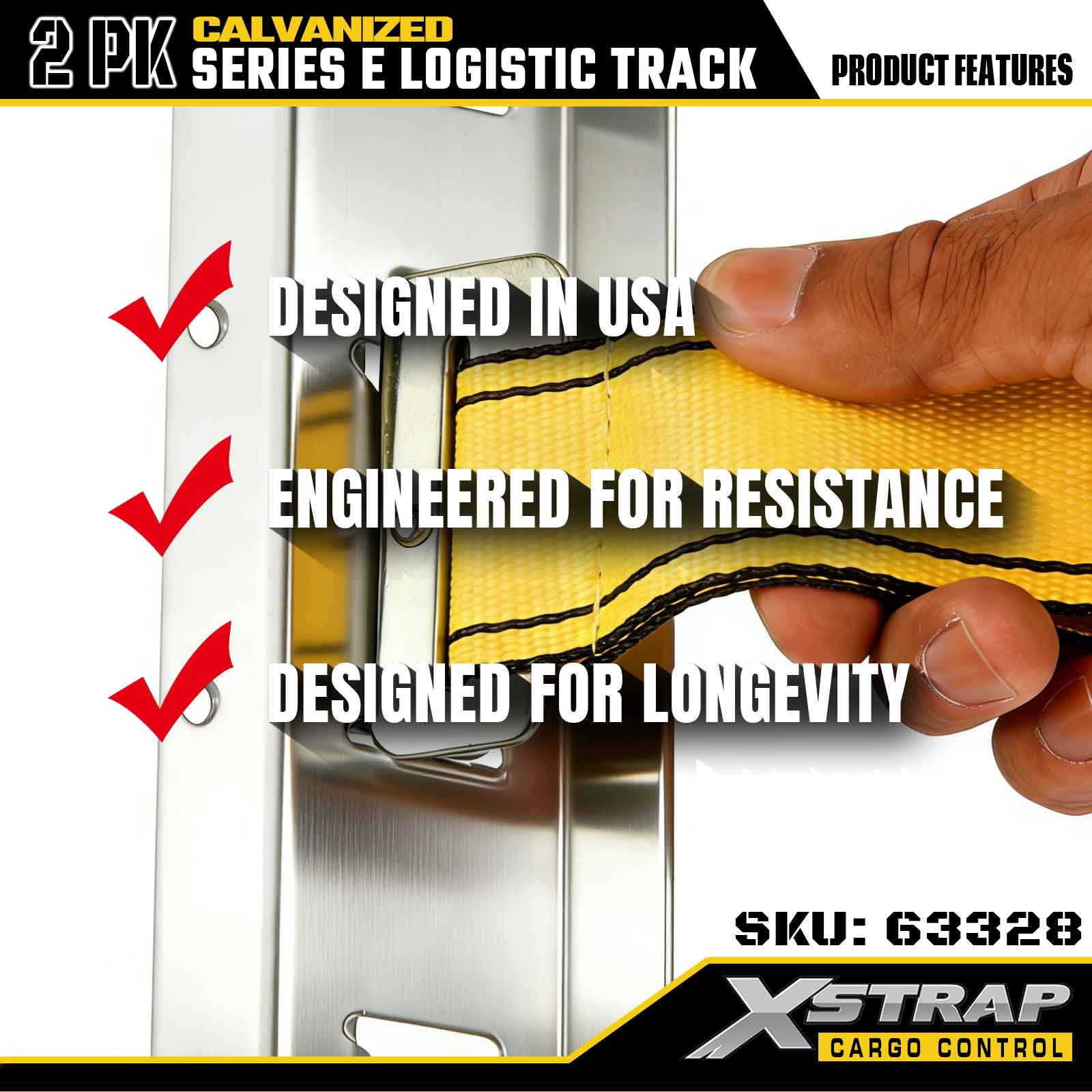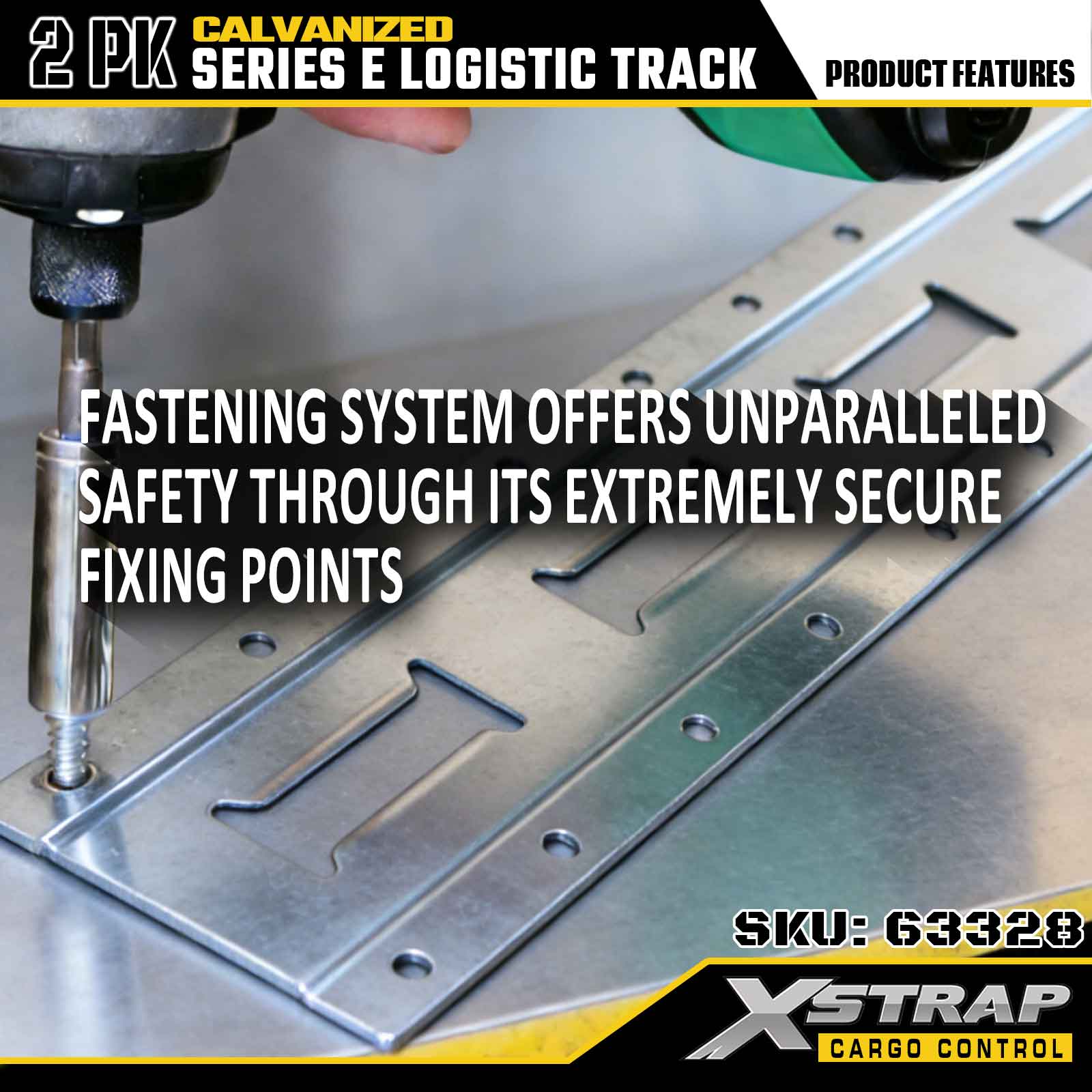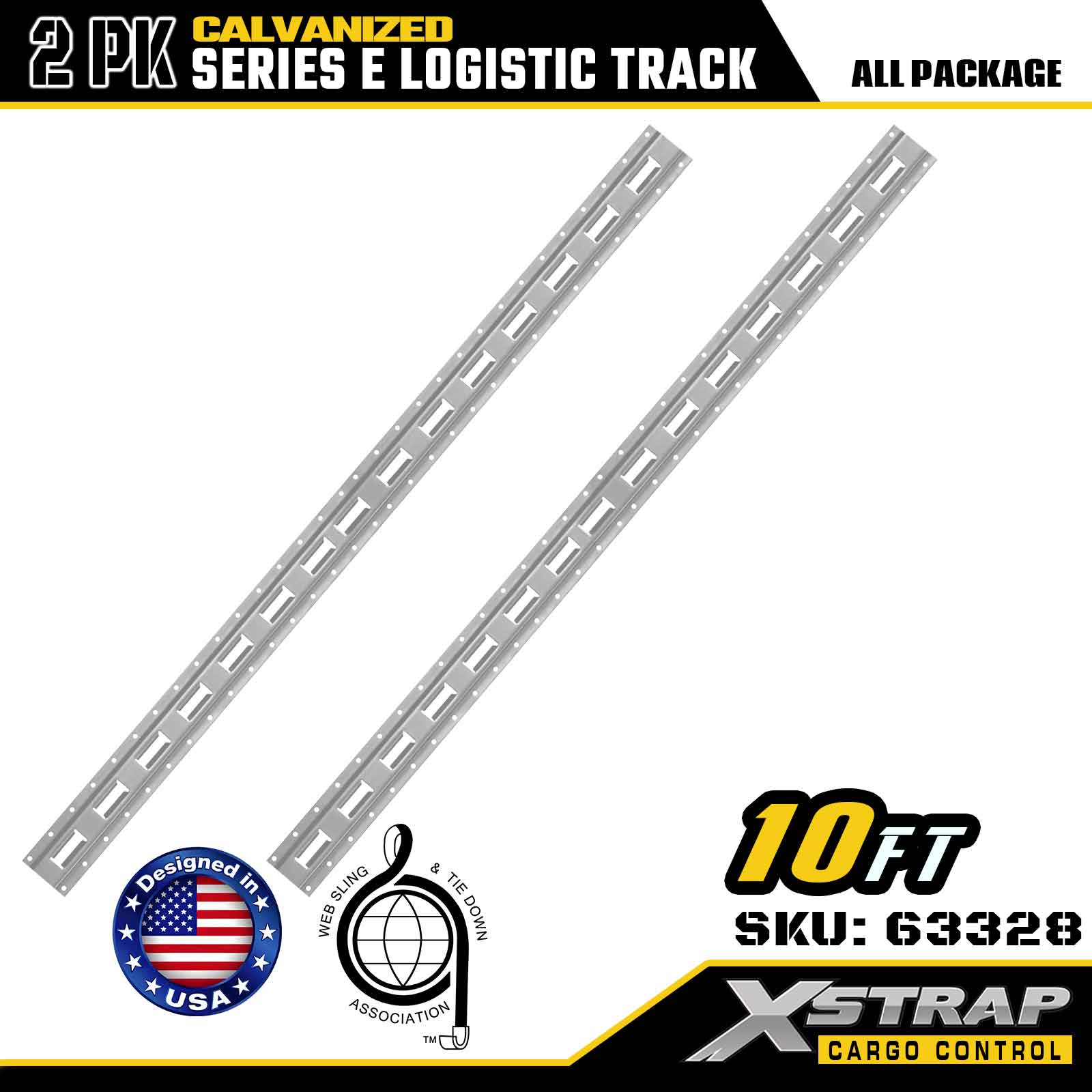 Xstrap 63328 10ft Electroplated Silver E-Track Tie-Down Rail - 12-Gauge Steel with Galvanized Finish, 6000LBS Load Capacity, 2-Pack for Cargo Securing