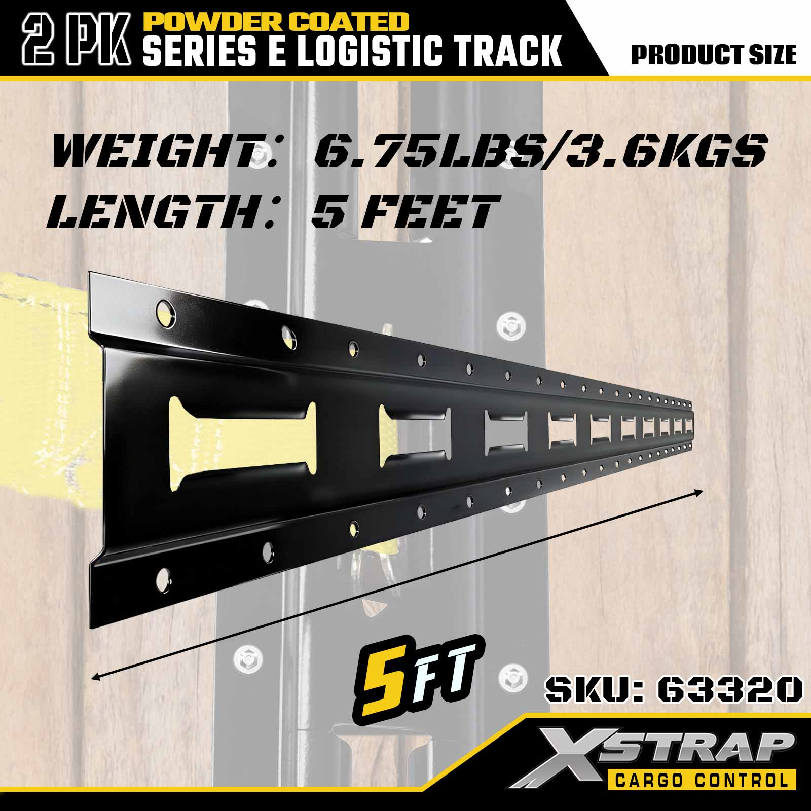 - Heavy-Duty Steel with Powder Coating Protection - 2-pack 5ft E-Type logistics rails crafted from premium 12-gauge steel, boasting 6000LBS load capacity for steady cargo anchoring. Durable grey powder coating provides outstanding anti-corrosion, rust-proof and scratch-resistant performance, ensuring long service life in severe transport/storage conditions.
