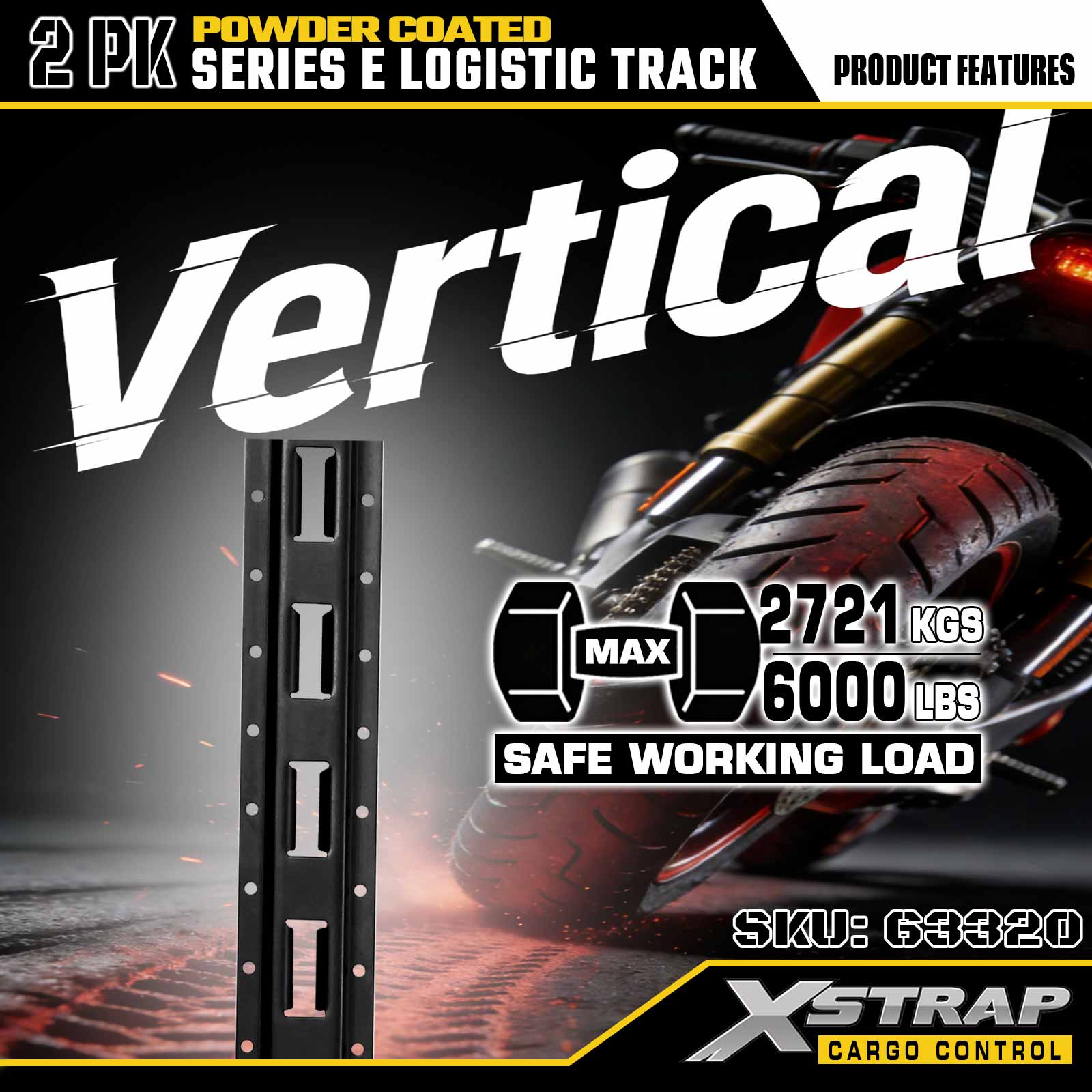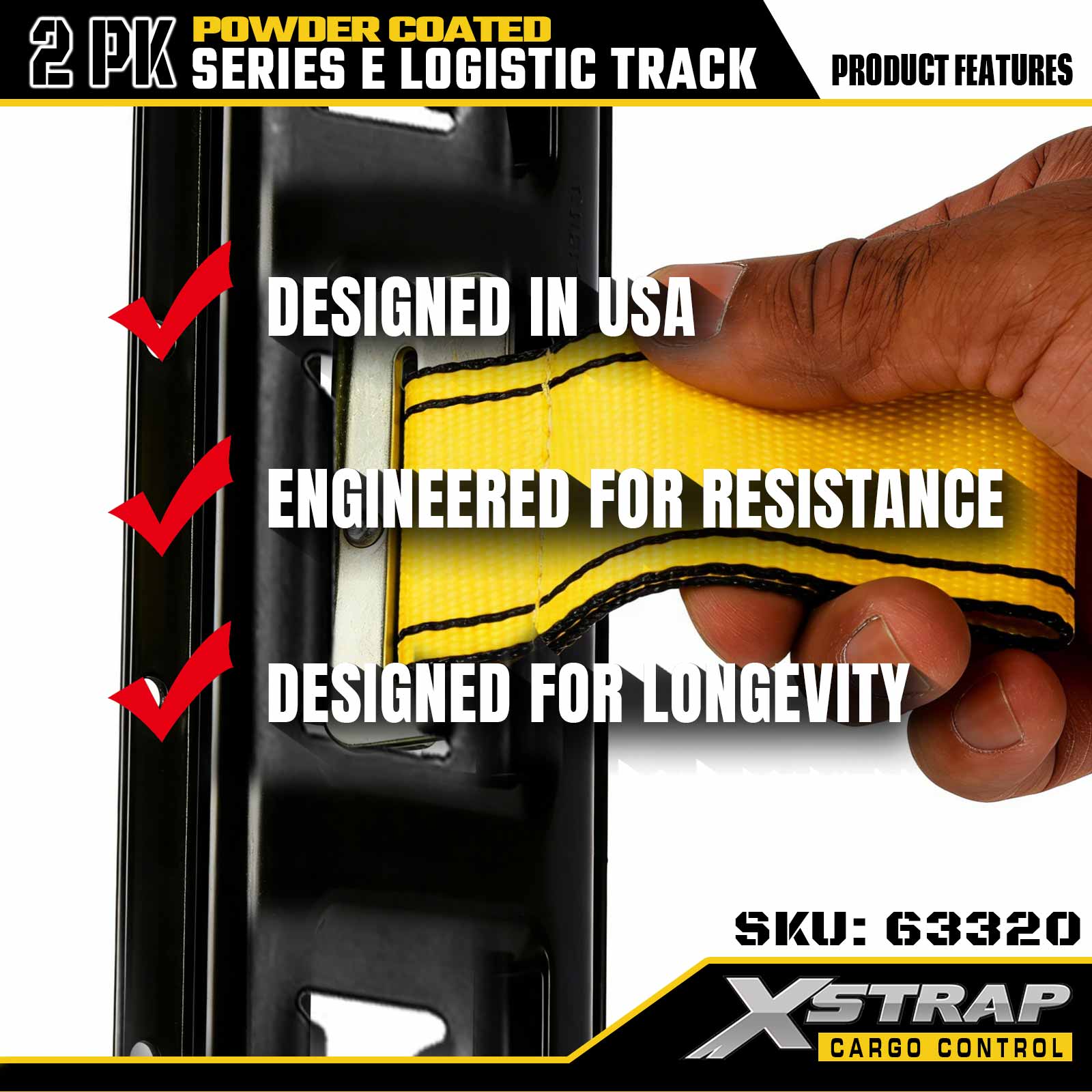 Xstrap 63320 5' Grey E-Type Logistics Rail - 12-Gauge Steel with Powder Coating, 6000LBS Load Capacity, 2PK for Cargo Restraint