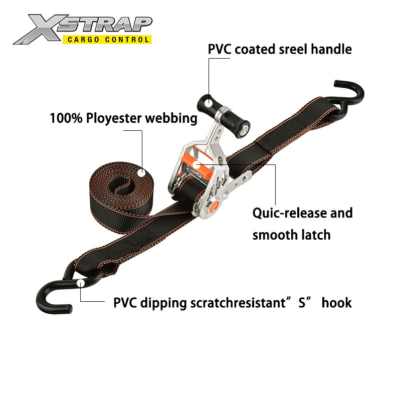 This is our 1-1/4 inch 32mm T bar ratchet straps. T bar handle design is different from the traditional ratchet mechenism handle, which can give extra leverage and reduces hand fatigue.