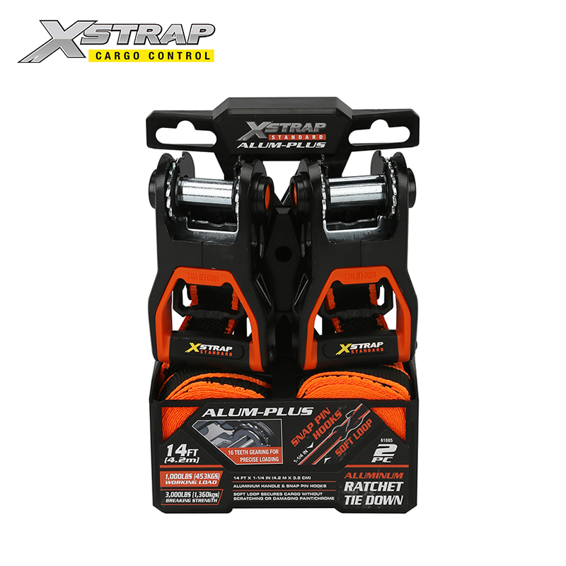 1-1/4 inch ratchet straps with aluminum body: this aluminum ratchet straps have high strength and durability. So it can withstand significant force and pressure. The aluminum mechanism is lightweight and robust, ensuring that the strap remains durable over time.