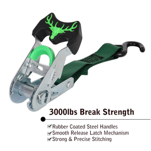 The webbing is made of high-quality polyester material and the break strength can reach 3000lbs. It is very suitable for the heavy-duty cargo control.