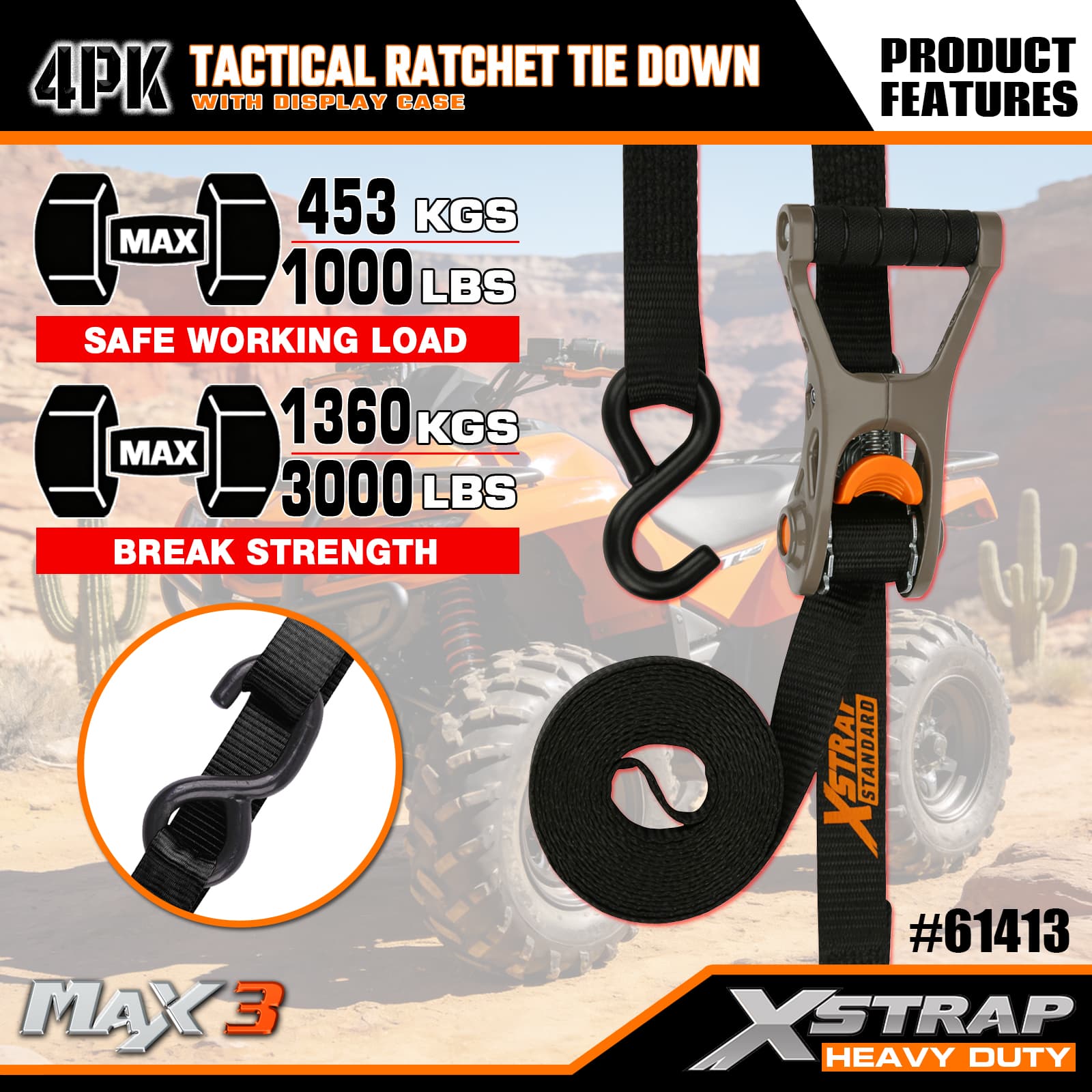 - User-Friendly Operation & Storage: The ratchet’s seamless locking paired with a display base makes both usage and organization straightforward—saving time when prepping or stowing the straps.