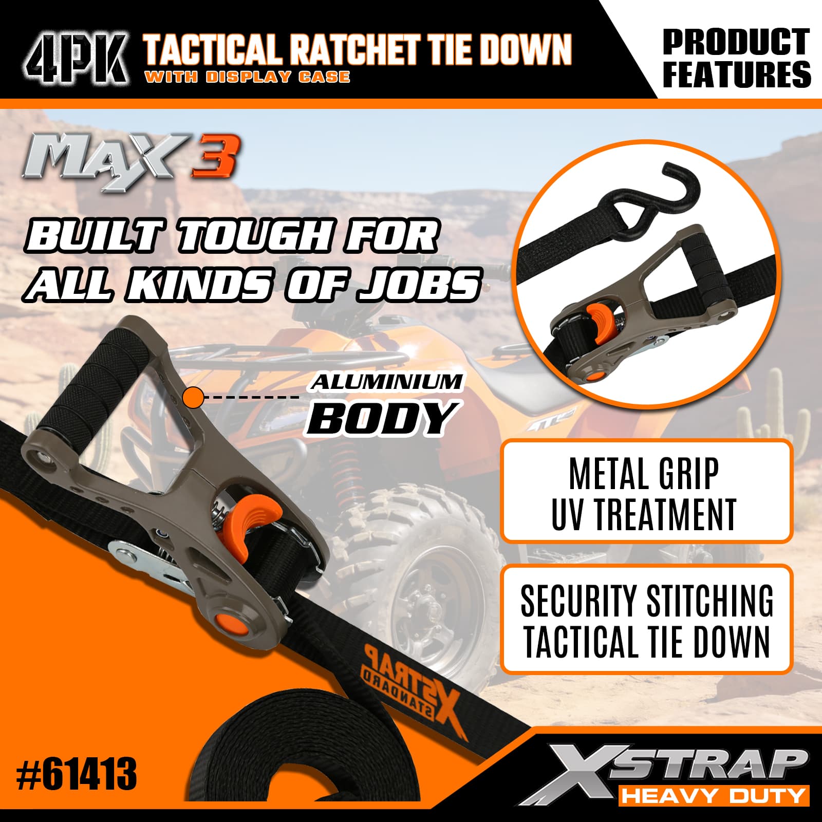 - Tactical Aluminum Ratchet Design: Features a robust aluminum metal grip for smooth, reliable tensioning—intuitive to operate, so both casual and frequent users can secure cargo quickly.