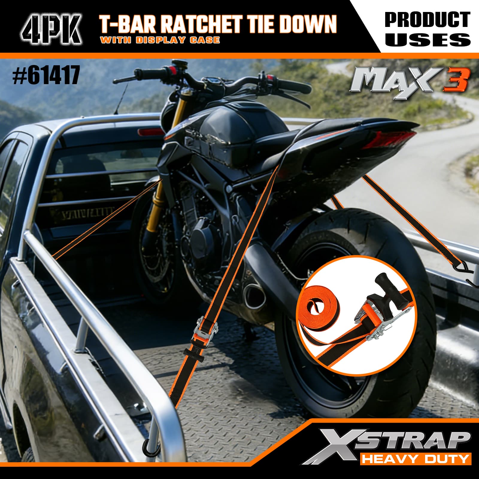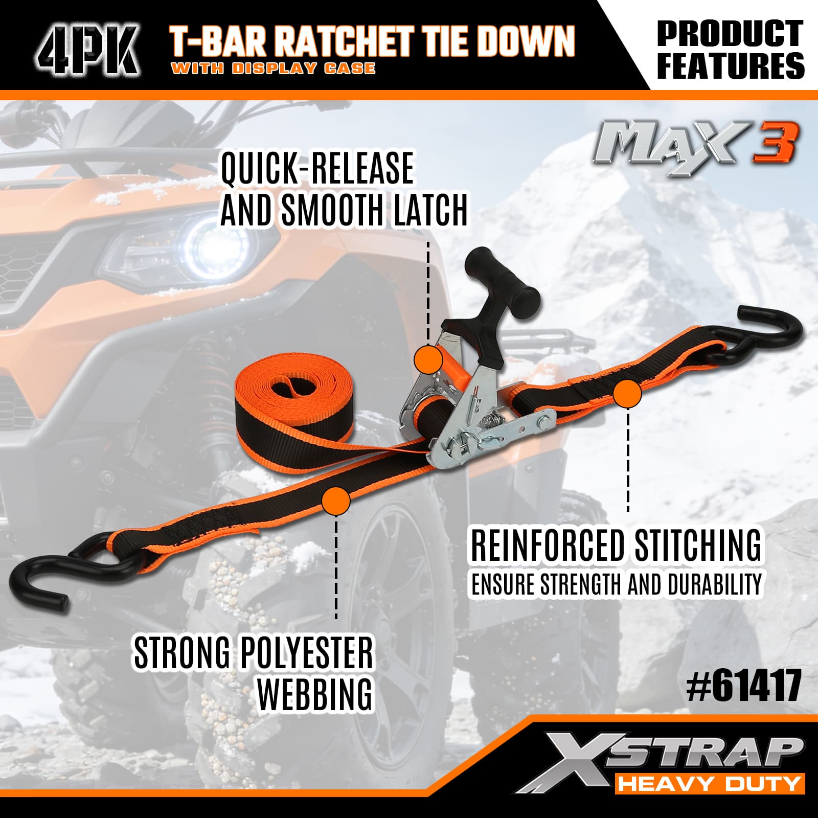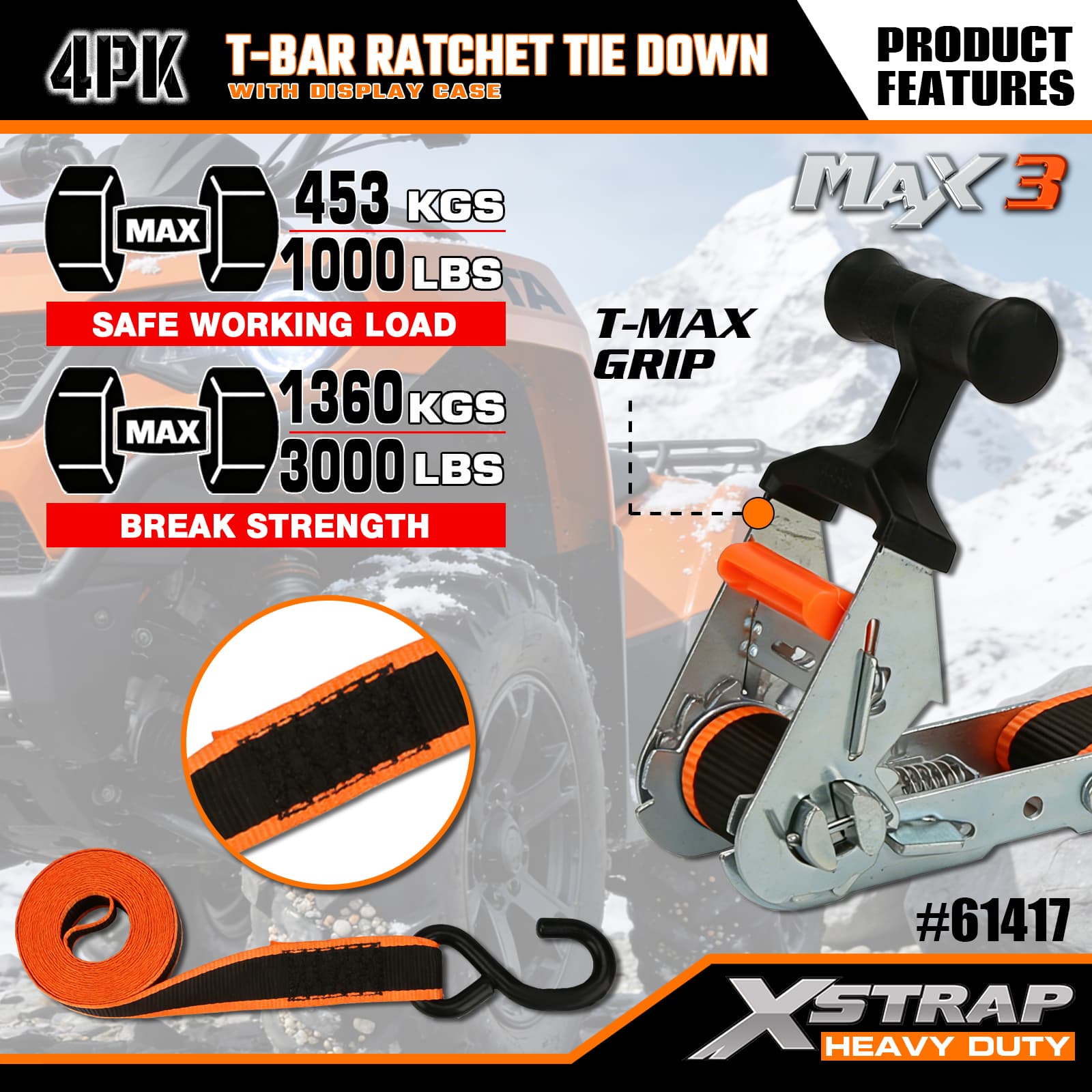 - Max Grip T-Bar Ratchet Mechanism: Features an ergonomic T-bar handle that delivers enhanced leverage for smooth, low-effort tensioning—intuitive to operate, so users of any skill level can secure cargo quickly.