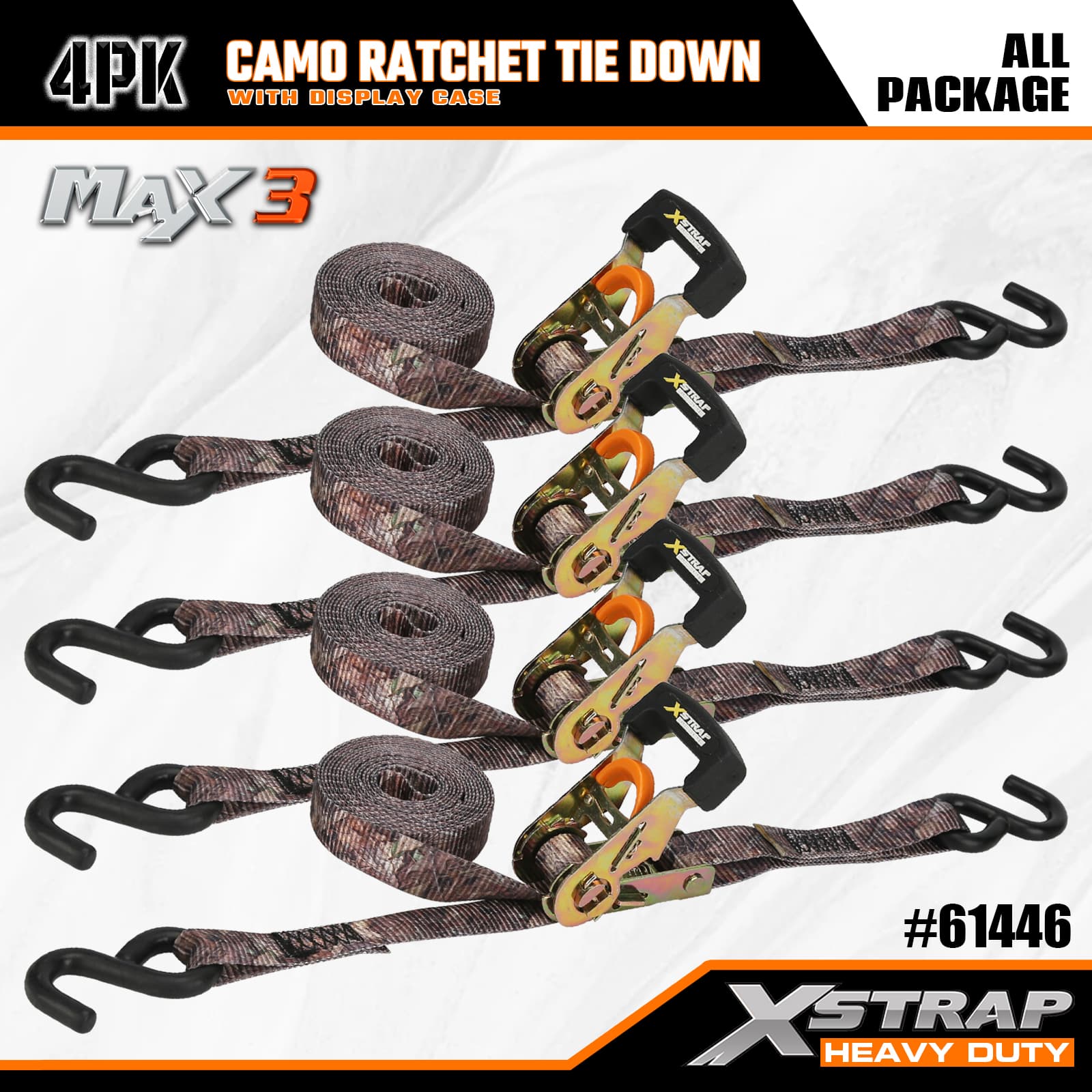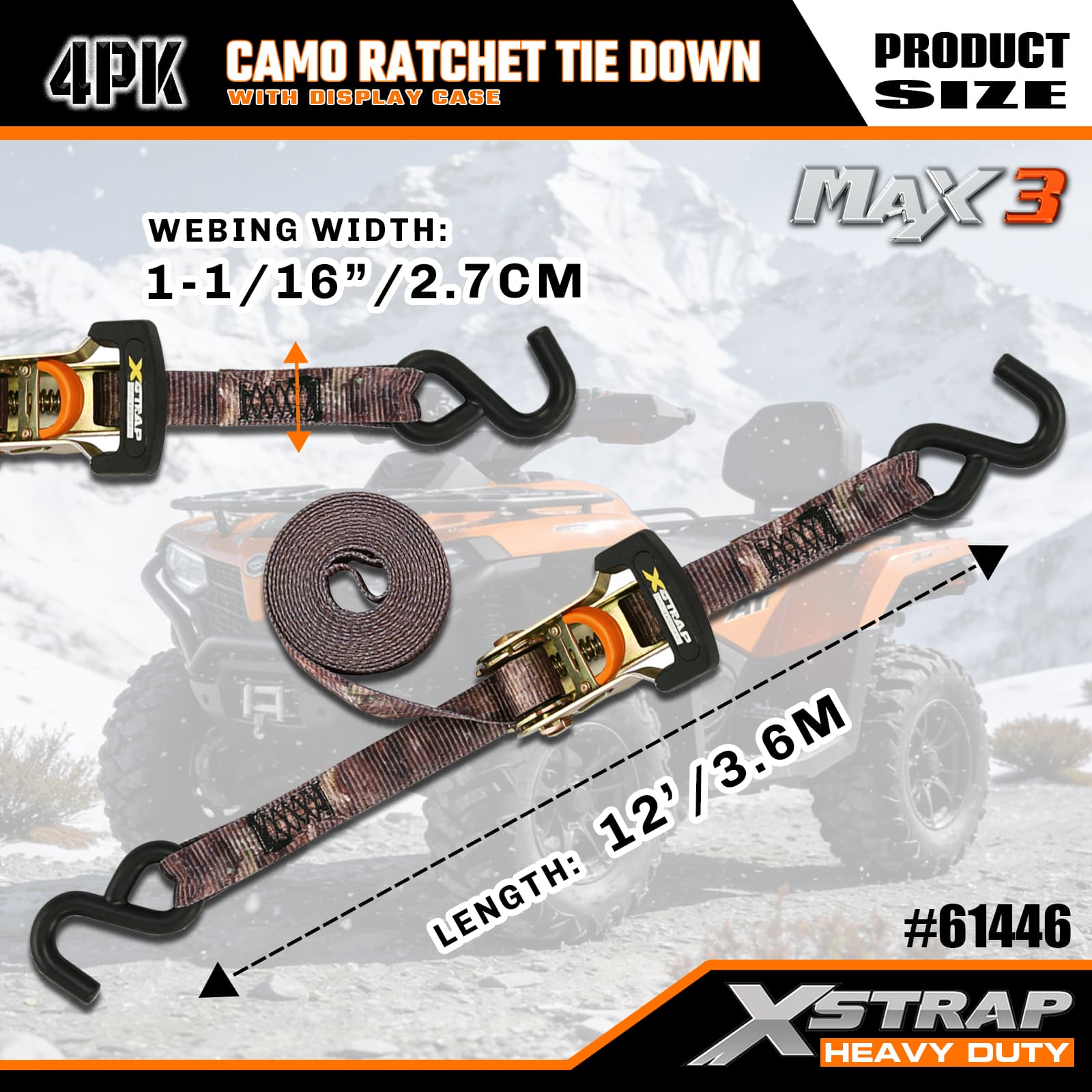 1-1/16” x 12’ 4PK Camo Ratchet Tie Down Straps
