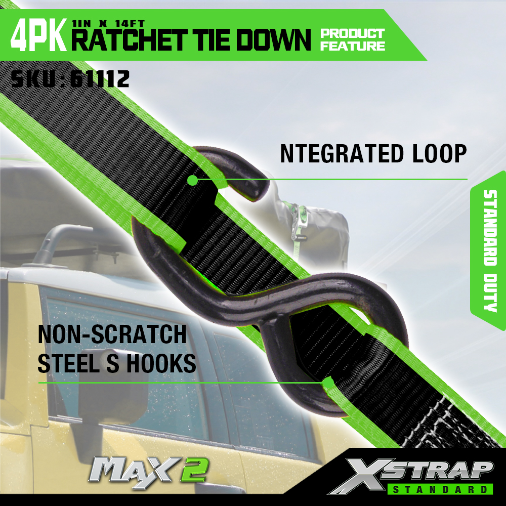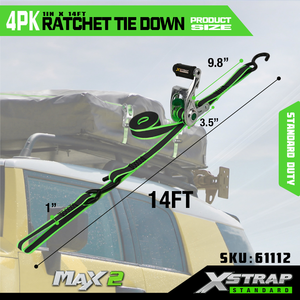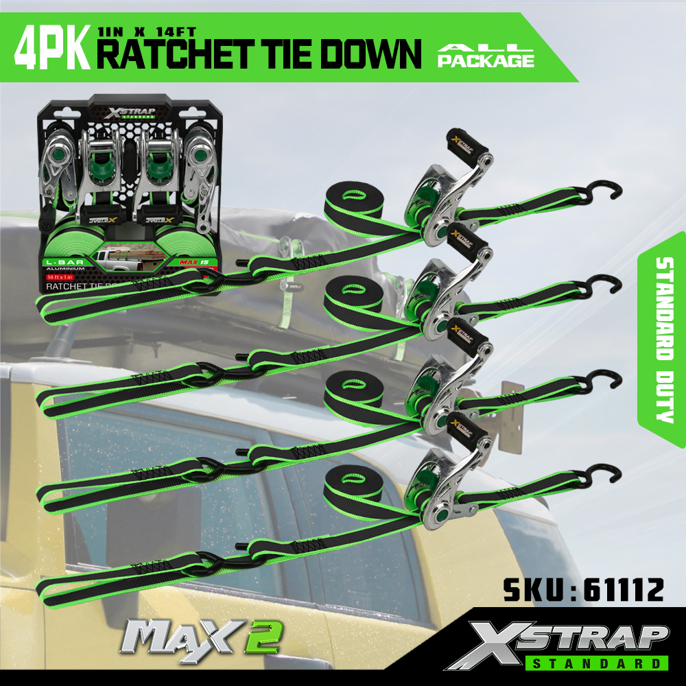 1” x 14’ 4PK Ratchet Tie Down