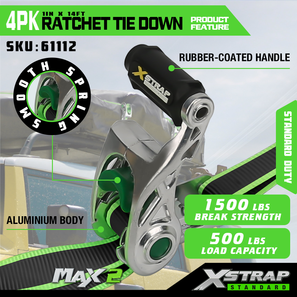 - Lightweight Open-Handle Aluminum Ratchet Tie-Down: Features an innovative open-handle design paired with a durable aluminum ratchet—combining lightweight portability with robust performance, ideal for easy one-handed operation.