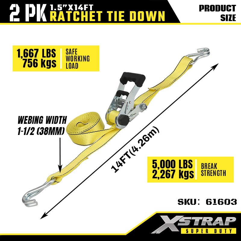 1-1/2” x 14’ 2PK Ratchet Tie Down