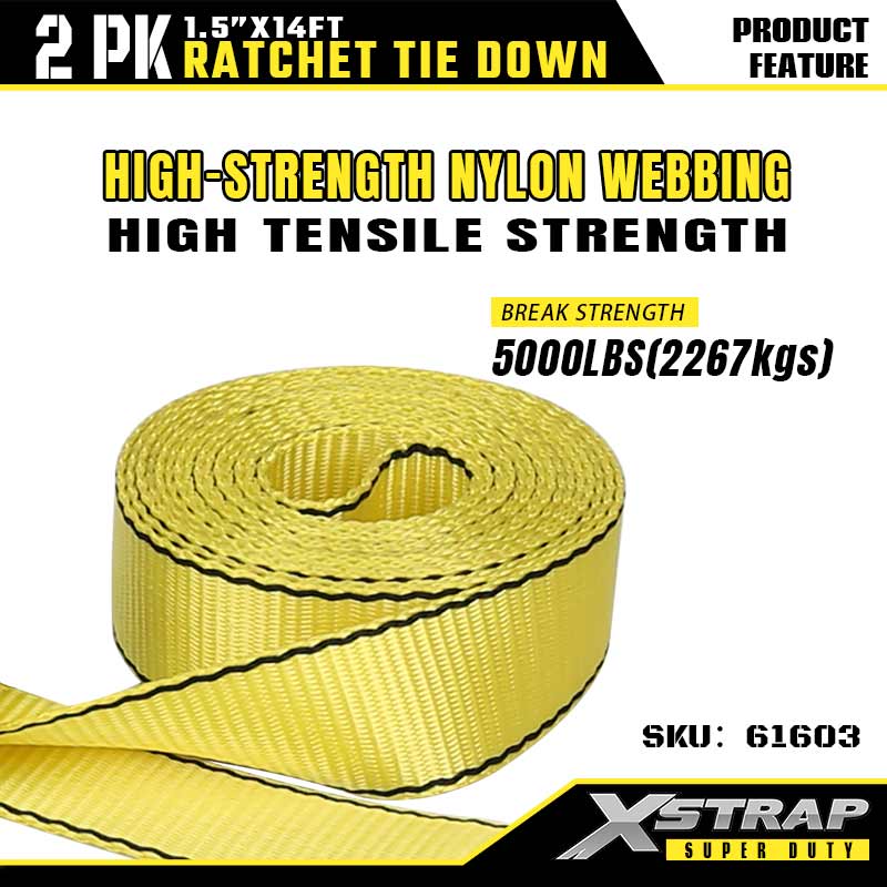 - High-Tensile Nylon Webbing (5000LBS Break Strength): Constructed with high-strength yellow nylon straps (1.5" width) — delivers exceptional tensile strength (5000LBS break load) and abrasion resistance, ideal for heavy-duty transport or industrial fastening tasks.l