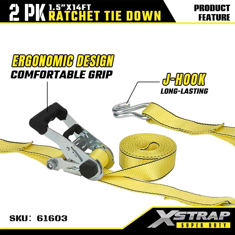 SMK is China Xstrap 61603 1-1/2” x 14’ 2PK T Handle Ratchet Tie Down 1667lb SWL Factory and Custom Xstrap 61603 1-1/2” x 14’ 2PK T Handle Ratchet Tie Down 1667lb SWL Suppliers.The product range includes tie-down straps, bungee cords, tow straps, lifting slings, hoists, and 4x4 accessories, widely used in transportation, logistics, outdoor, and industrial sectors. Its in-house brand XSTRAP enjoys strong recognition in global markets, alongside flexible OEM/ODM services for customized needs.