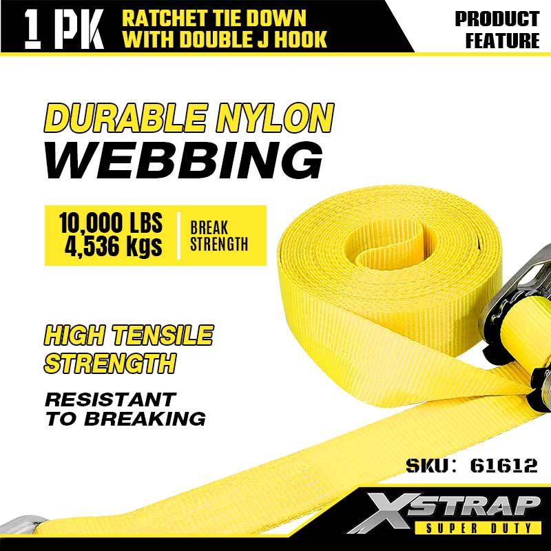 - High Tensile Nylon Webbing:The 2 inch wide nylon webbing uses reinforced stitching to resist fraying and stretching. It has a break strength of 10,000 LBS, so it can handle heavy equipment and oversized cargo.