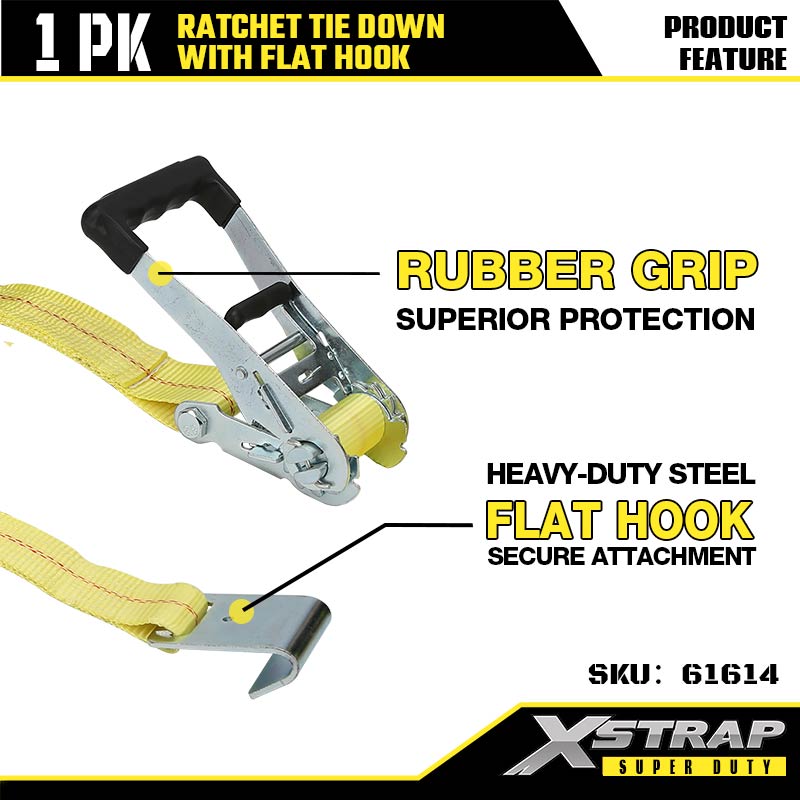 - Ergonomic Ratchet Operation: Skip the struggle with slippery handles. The rubber grip ratchet lets you tension and lock heavy loads in seconds with one hand. Even first time users can get a tight stable hold without extra tools.