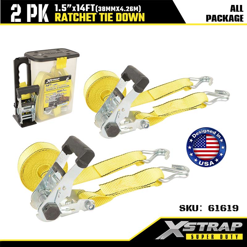 - 14FT Length for Versatile Use: The 14 foot length fits truck beds, trailers, or roof racks. The 2 pack gives you enough straps to secure furniture, equipment, or building materials for any hauling task.