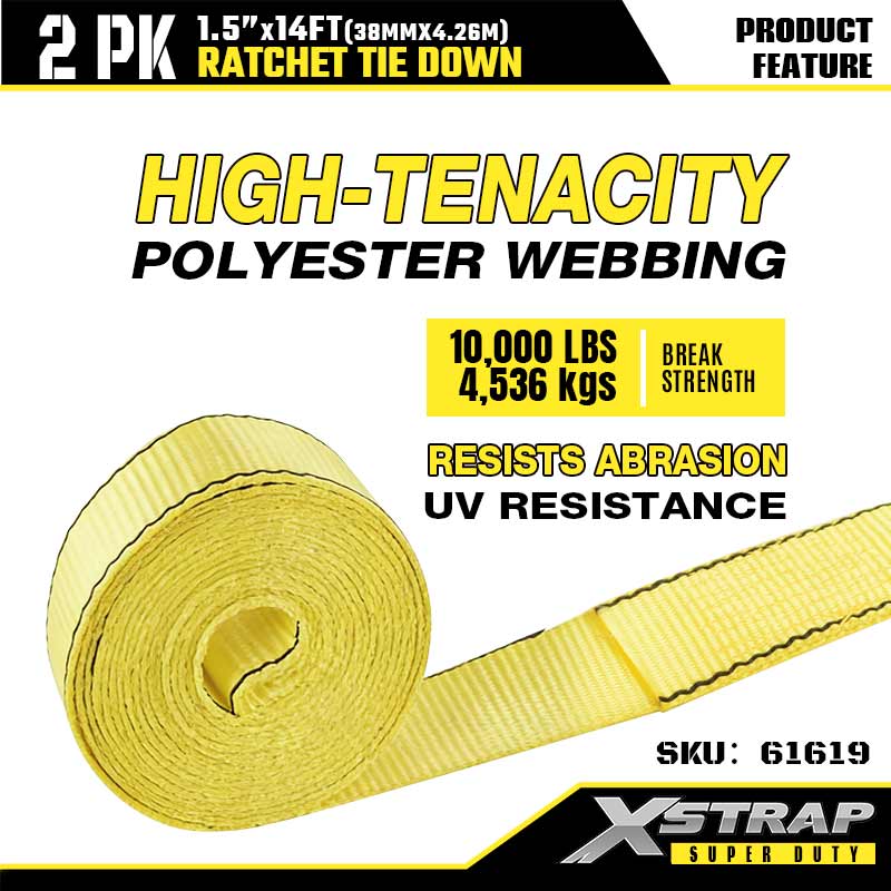 - High Tenacity Polyester Webbing: The 1.5 inch wide polyester webbing resists fraying, stretching, and abrasion. It’s UV resistant to hold up to sun and rain, so it stays strong for long term use on job sites or backroads.